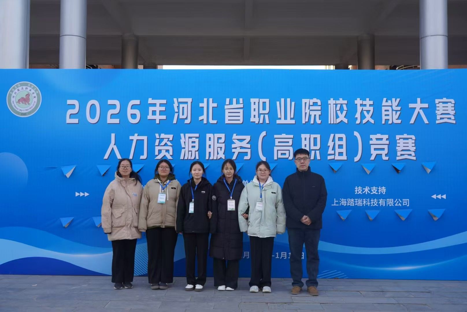 2026年1月11日,人力资源服务(高职组)赛项在河北政法职业学院举行。2024级人力资源管理专业成易蔓、杨悦晗、孙妍、王卫硕四位同学组成参赛团队,经过全天全流程的竞技比拼和多个环节的严格考核,通过扎实的专业技能和稳定的现场发挥,在众多参赛队伍中脱颖而出,获得一等奖。