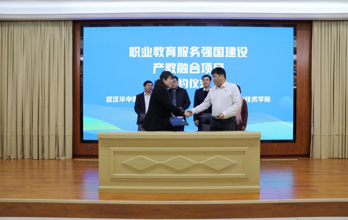 项目签约环节,河南工业职业技术学院、武汉船舶职业技术学院、广州铁路职业技术学院、重庆工业职业技术大学、河北机电职业技术学院、无锡职业技术大学院校代表与华中数控完成了职业教育服务强国建设产教融合项目签约。