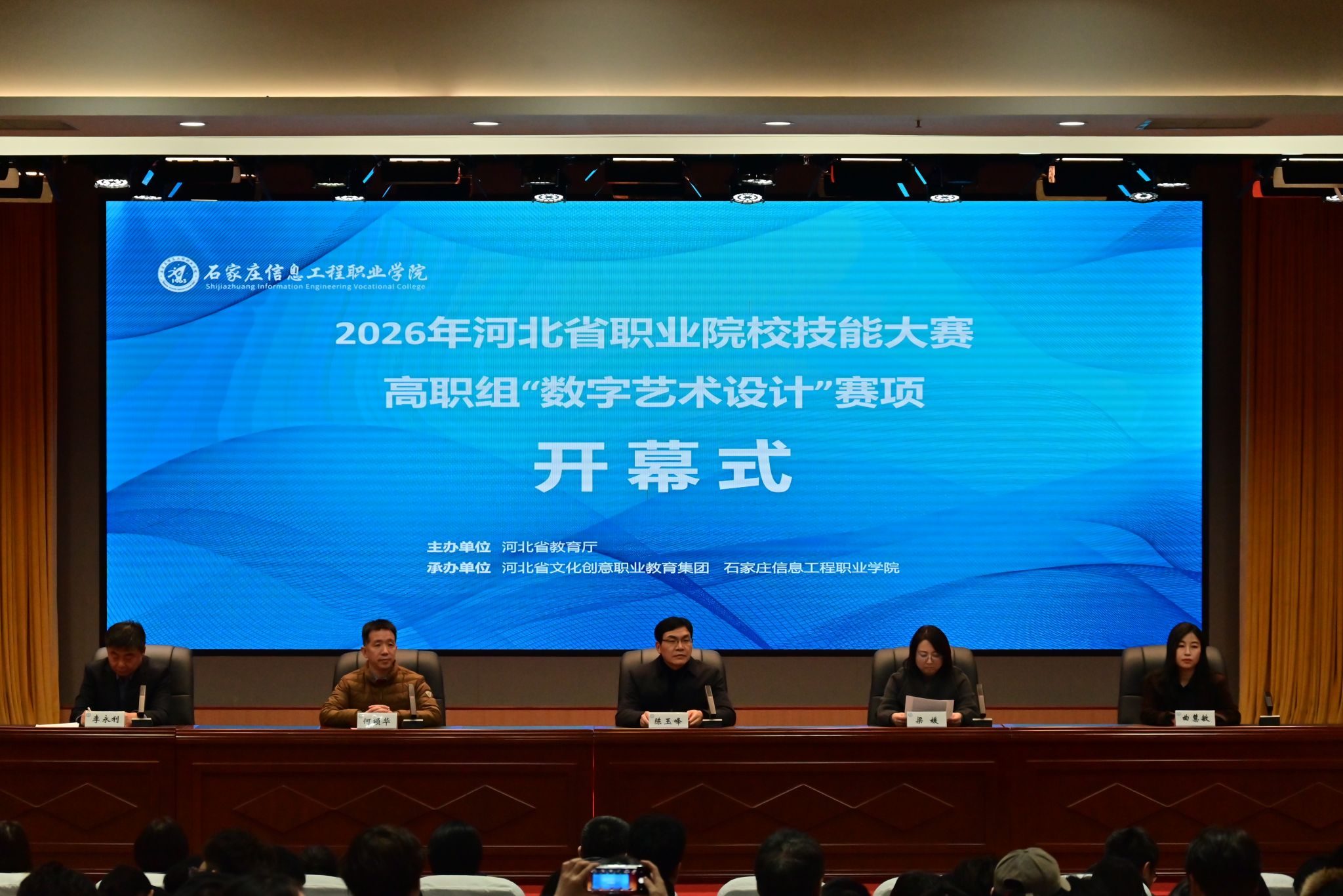 副院长陈玉峰、河北省文化创意职业教育集团秘书长梁媛、深圳职业技术大学裁判长何颂华、河北省文化创意职业教育集团督导许广彤出席大赛开幕式。教务处处长主持。