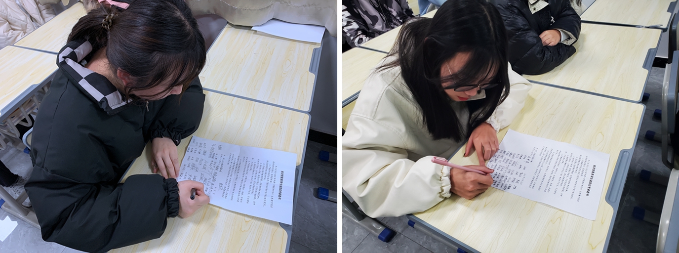 同时,经济贸易系学生会发出“与诚信携手同行 与舞弊挥手作别”的倡议,号召同学们以端正的态度、饱满的精神和昂扬的斗志对待每一场考试,靠实力取得优异成绩。1800余名学生签下《经济贸易系诚信应考承诺书》,承诺诚信应考。