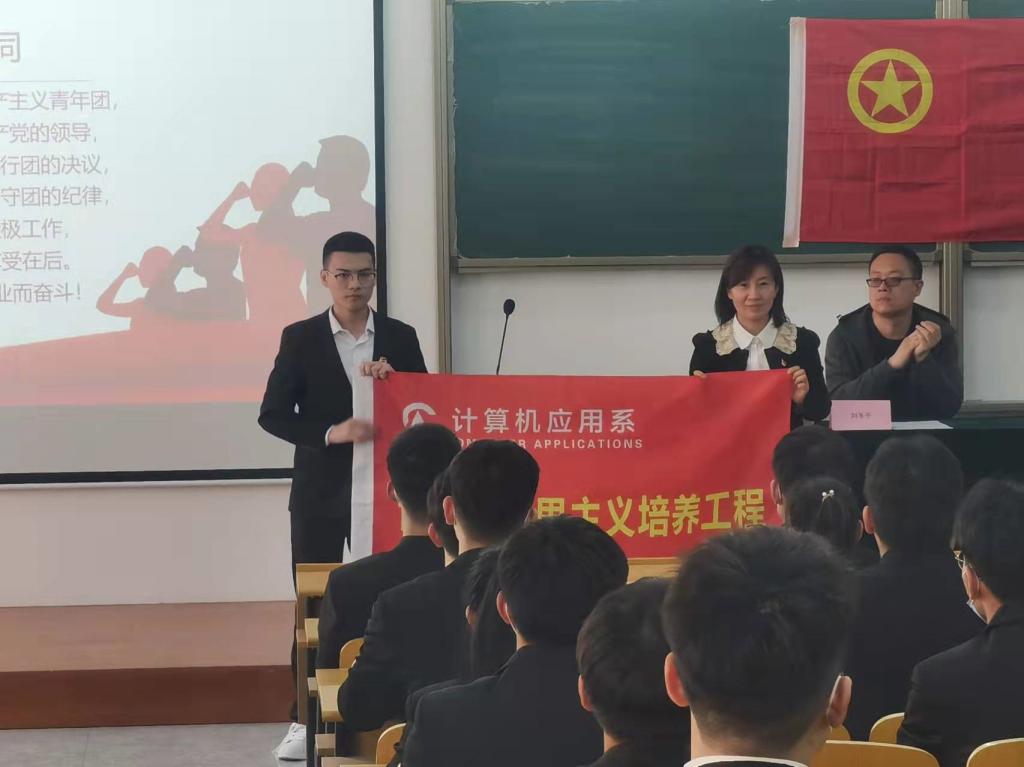 为使大学生团员、团干部提高政治修养,坚定政治信念、政治立场,加强政治鉴别的敏锐性、政治忠诚的可靠性,顺利成长为中国特色社会主义事业的合格建设者和可靠的接班人,3月26日下午,计算机应用系2022年第一期“青年马克思主义培养工程” 大学生骨干培训班在知行4号楼249教室正式开班。计算机应用系党总支书记李擎、副书记马丽出席开班仪式。