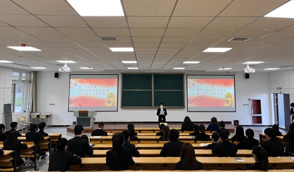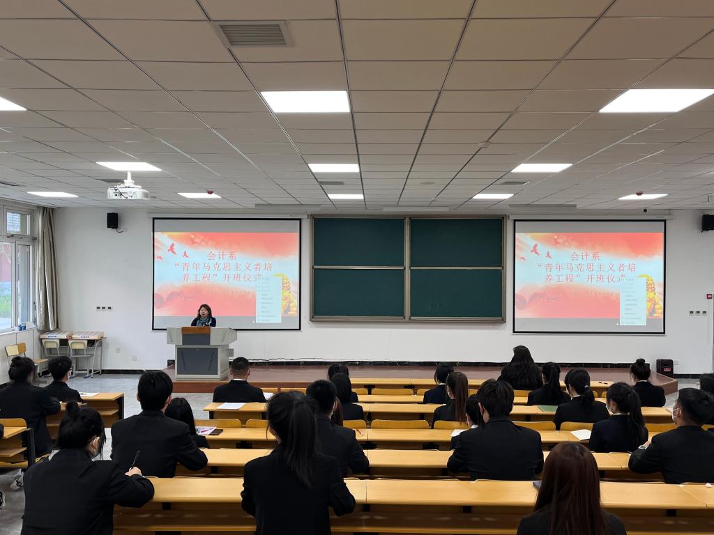 为深入学习落实习近平新时代中国特色社会主义思想,贯彻习近平总书记关于教育工作的重要论述,激励学生自觉把个人的理想追求融入国家和民族的事业中,努力培养德智体美劳全面发展的社会主义建设者和接班人,4月2日,会计系“青马工程”培训班在知新楼2-4连廊110阶梯教室举行。会计系党总支书记田静、副书记王炳吉出席开班仪式。团总支副书记解瑞营担任主持人。