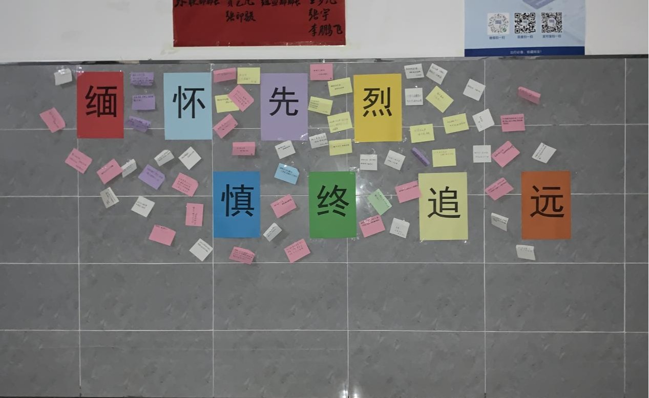 4月4日,在知远楼三楼大厅,同学们以设计展板的形式,用一幅幅手工作品缅怀革命先烈,用寄语表达了同学们的崇敬之情。