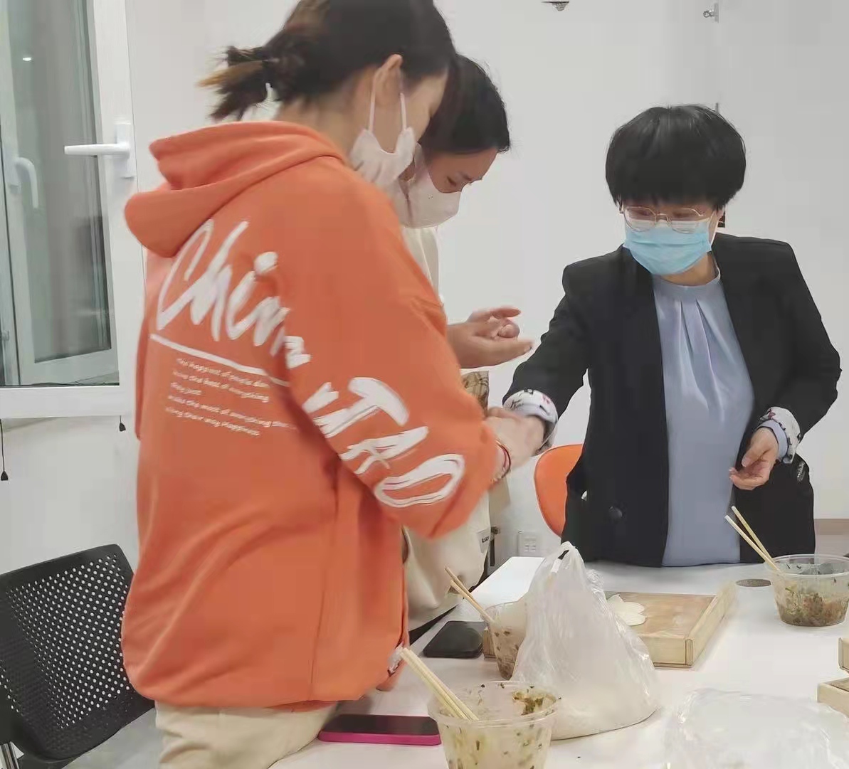 同学们以班级为单位到餐厅领取食材后,围坐在教室里一起包饺子,同学们积极踊跃展示自己的手艺,包出来的饺子花样繁多。庞超书记不时为同学们讲解包饺子的小技巧,欢声笑语不断。看到自己的劳动成果热气腾腾出锅,同学们纷纷争相拍照留念,定格美好。虽然饺子有大有小、形状各异,但每个人都吃的津津有味,因为饺子里面有自己的付出,也有师生间的情谊和传媒艺术系大家庭的温暖。