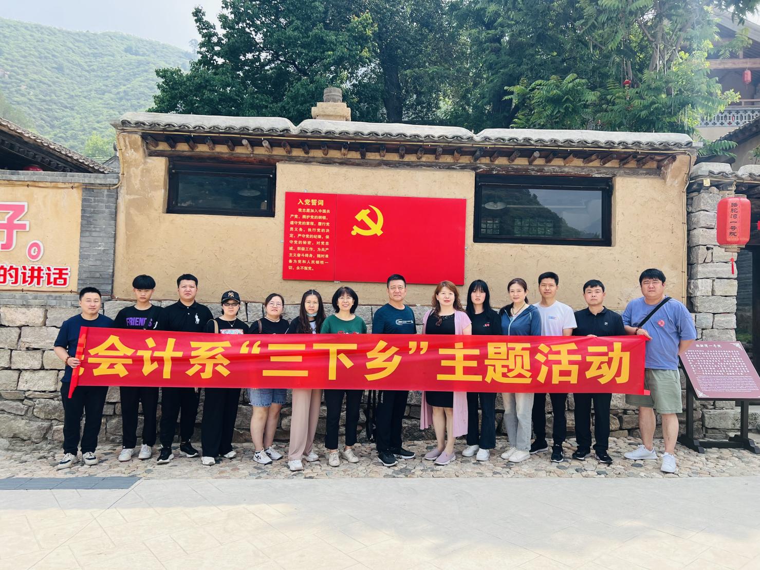 炎热的天气不能阻挡师生们前行的步伐,会计系“三下乡”社会实践团队前往保定市阜平县龙泉关镇骆驼湾村进行参观。沿着习近平总书记的步伐,深入晋察冀革命老区,重温了红色故事;围绕习近平总书记考察的地点,进行蹲点式调研采访,再现经典场景,重温暖心话语。如今,骆驼湾村的道路两旁建成了沿河公园、文体广场,昔日贫困闭塞的村庄,已蜕变为中国美丽休闲乡村、全国乡村旅游重点村。结合自身独特的自然资源和气候条件,已形成现代食用菌、高山林果、中药材、规模养殖、家庭手工业、生态旅游等六大产业全产业链。看着青水瓦、木挑梁、小皮檐、花格窗、石板院,全体师生感受到了脱贫攻坚的坚实成果,更加体会到了“没有共产党就没有新中国,没有共产党就没有现在的新生活”,生动的事实给所有师生上了一堂深入灵魂的党课。