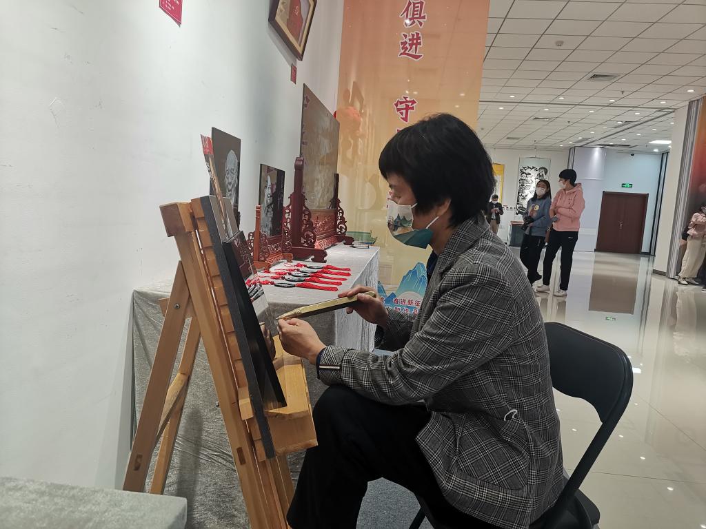 此次展览旨在庆祝党的二十大胜利召开,以非遗作品的独特形式和丰富内涵,弘扬主旋律,传播正能量,营造团结奋进、昂扬向上的文化氛围。方士英石影雕团队从构思到设计,从绘制到雕刻,历时近一年创作了京杭大运河系列作品《千里运河图》,选取大运河沿线的北京通州、天津三岔口、河北沧州、江苏扬州等8个典型场景展开创作,本次展出的是沧州段大运河风貌作品。方士英老师现场为观众们展示了石影雕的制作流程和注意事项。