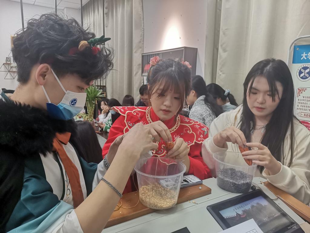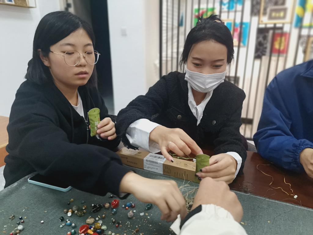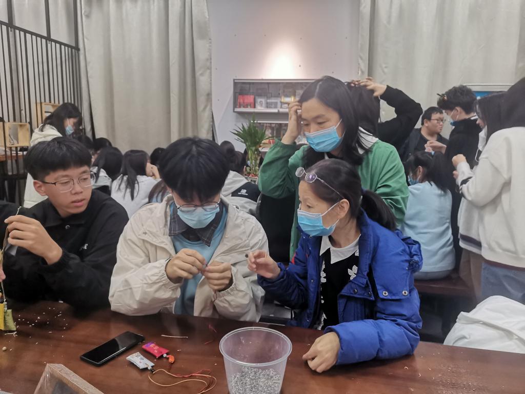 10月31日晚,王丽云剪纸技术技能大师工作室多彩晚自习第二场“香囊制作体验”在知新7号楼124教室举办。来自学院各系部的师生代表102人一起制作了精美别致的手工香囊。