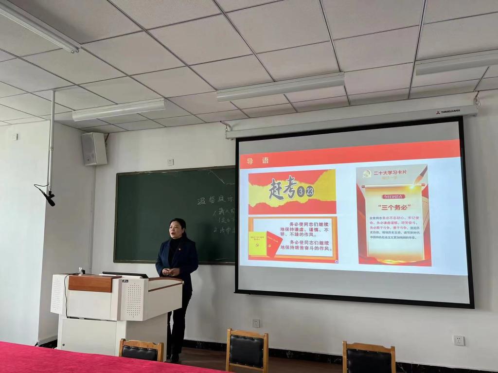 2023年是全面贯彻落实党的二十大精神的开局之年,也是实施“十四五”规划承上启下的关键一年,为更好地聚焦党的二十大新部署、新要求、新定位,深刻理解新时代对教育提出的新期待、新使命、新任务,全面落实2023年学院党委建设的总体要求,坚持以习近平新时代中国特色社会主义思想为指导,全面贯彻落实党的二十大精神,着力增强基层党组织的政治功能和组织功能,大力推进模范党组织建设,3月23日,基础部党总支邀请马克思主义学院院长李秋红教授,为基础部全体教师做了题为《高举旗帜 凝聚力量 团结奋进》的党的二十大精神宣讲,对大会报告要点进行深入解读。