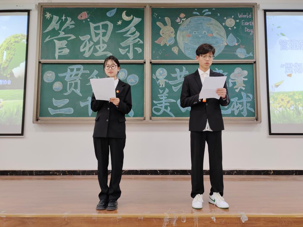 为了引导同学们爱护地球、珍惜资源,积极主动地参与到生态文明建设中来,管理系于4月12日下午在知新楼310教室开展“贯彻二十大,共建美好地球”主题志愿活动。