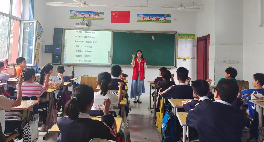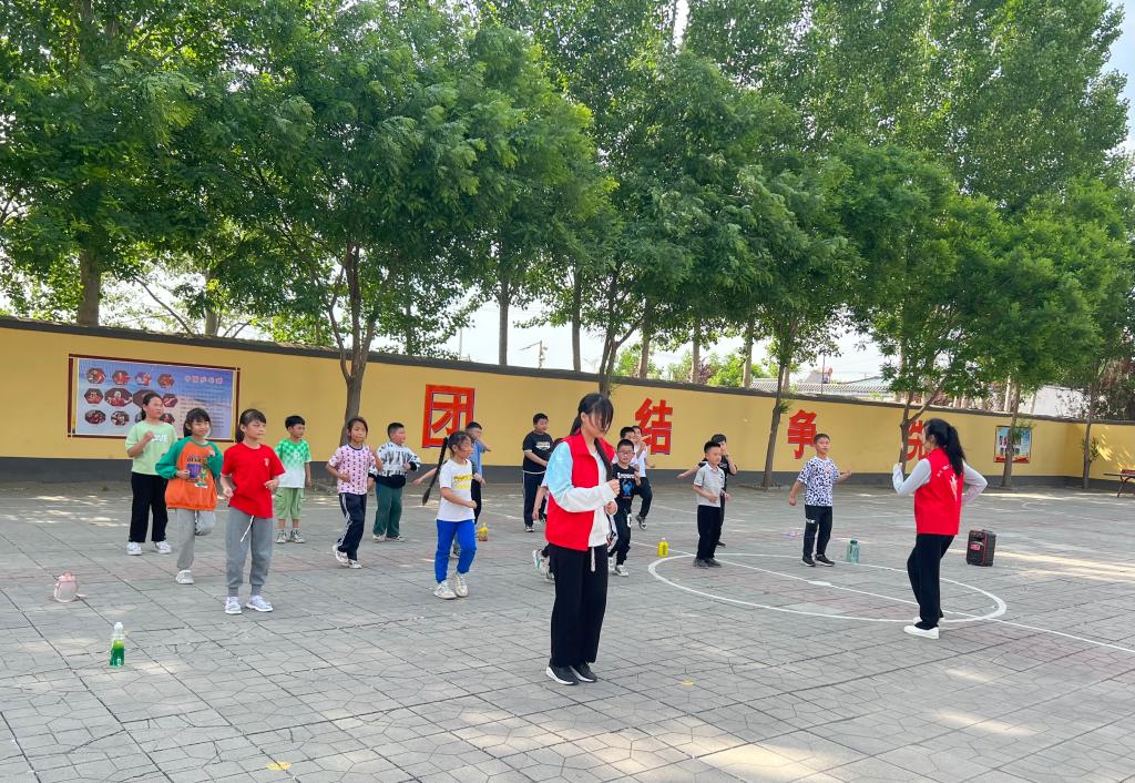 beat365官网学生化身小老师开展教学活动。教室里,22级旅游管理三班孙汶慧、22级会计9班宋璐阳认真教导学生发音,带领学生朗诵《请党放心,强国有我》,同学们慷慨激昂,深情并茂,铿锵有力的朗诵声在耳边回响,激情澎湃的爱国情怀在心头荡漾。操场上,22级软件五班韩璐萱、梁鑫玉耐心指导学生的动作,欢快的音乐声《向快乐出发》响起,孩子们伴随着动感的节奏快乐的舞蹈,稚气的脸上露出灿烂的笑容,一举一动展现出少年的蓬勃朝气。