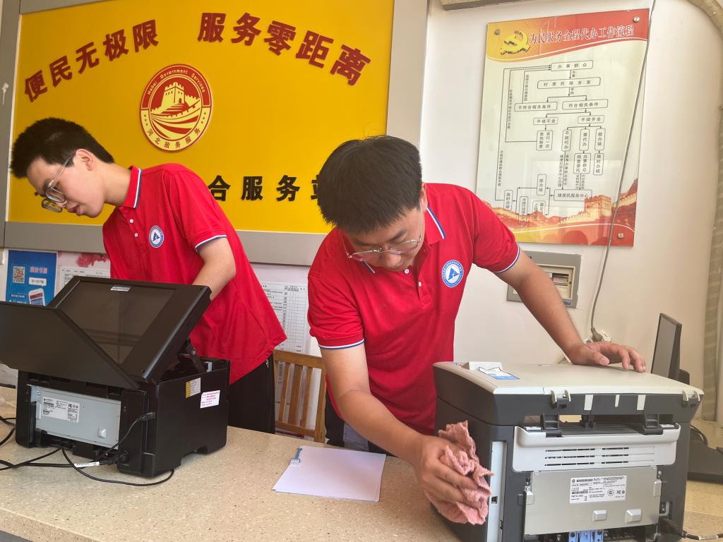在志愿活动中彰显青年力量。引导青年将理论和实践相结合,积极参与“大思政”教育课程,是让其长才干、做贡献的重要举措。实践团在大道王庄村开展了一系列社会实践活动。在村主任王志详细的介绍下,实践团了解了乡村基本情况和近几年发展状况,并在村委会开展整理资料、优化电脑系统等志愿服务工作。随后,实践团顶着烈日骄阳,挨家挨户发放反诈宣传册,帮助村民下载安装“国家反诈中心”APP,并开启电话拦截和短信拦截功能,提高反诈防骗意识。
