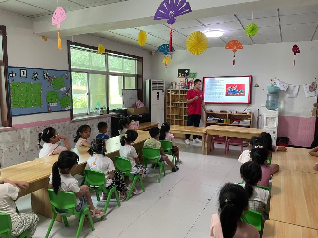 于红色实践中争做红色传人。依托丰富红色资源,以实物、实例、实事为载体,是传承红色基因的有效方式。实践团的成员来到了高碑店市思源幼儿园,教唱红色歌曲、讲述革命故事。成员闫庆声情并茂地给孩子们讲述了小游击队员潘冬子棉衣藏盐的故事。回味着故事,实践团成员和小朋友们一起学唱了《闪闪的红星》,稚嫩的童声传递出深厚的拳拳爱国情,并将“生在国旗下,长在春风里”的自豪之心融入到制作的小红军背包中。