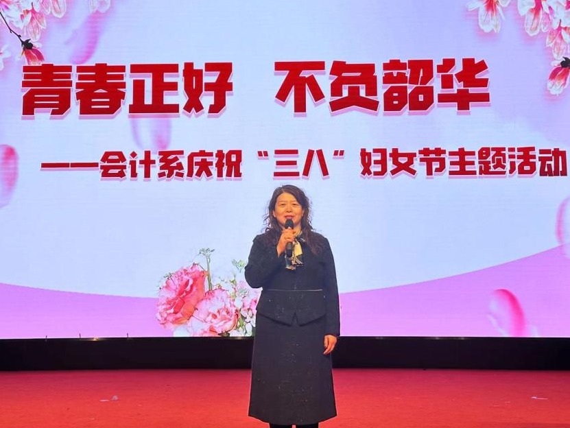 最后,田静代表会计系向全体女同学表达了节日的祝福和问候,祝大家“三八”妇女节快乐,勉励全体女同学,要珍爱自己的身份、珍重自己的健康、珍惜青春年华,不负韶华,绽放青春的色彩,努力成长为更好的自己。