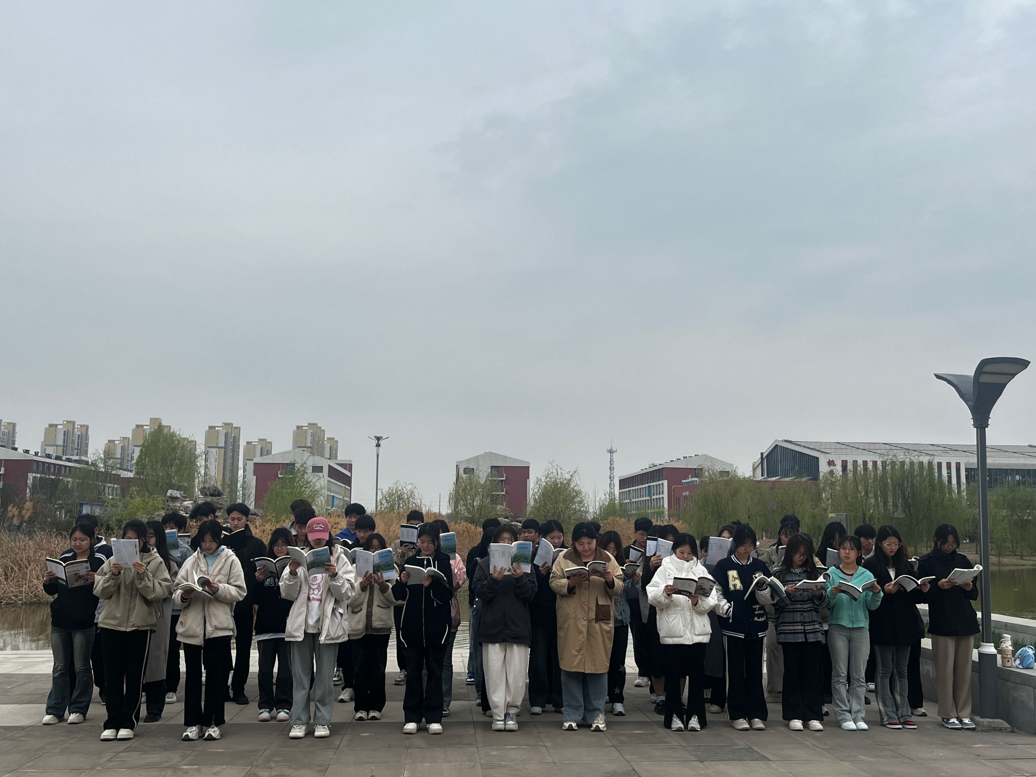 开展“书香润心灵,阅读促成长”诵读活动。书香浸心灵,阅读拓视野。4月9日,在最美的季节里,阳光之下,知海湖前,同学们齐声诵读古诗词、散文等,阅读声回荡在湖畔,让整个校园充满了朝气。同学们通过文字与大师对话,与经典为友,说古道今,在读书中增长知识,在读书中积累底蕴,在读书中感悟世界,真正把阅读过程打造成快乐的体验之旅、发现之旅。