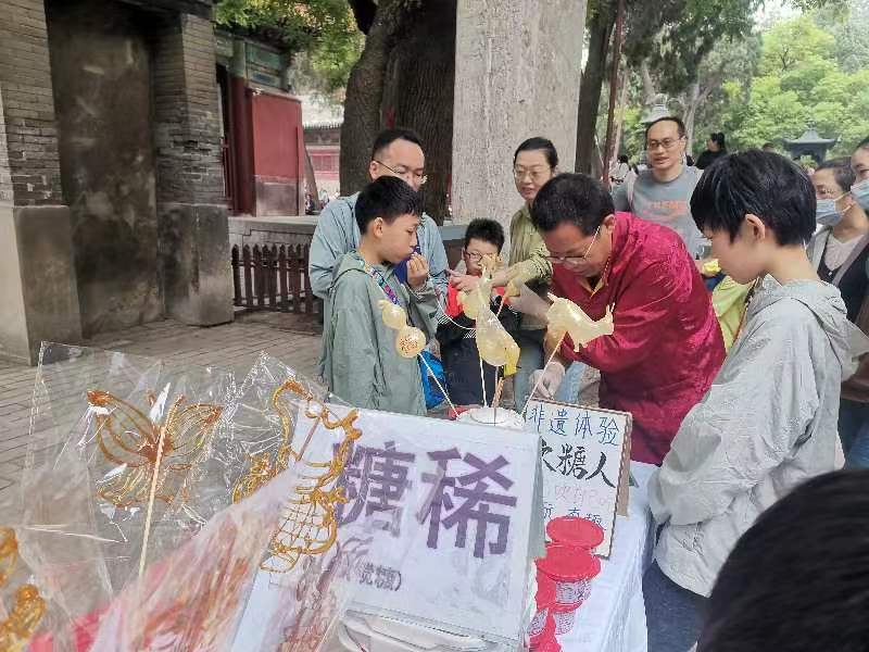 志愿团队为景区游客带来了剪纸、绳结制作、糖人糖画、米上刻字等非遗技艺和体验,并在活动现场为游客派发剪纸作品。志愿者们还通过工作人员的讲解,游览了古寺,考察了正定文创产品,感叹了千年古韵的魅力,切身感受到了河北深厚的文化底蕴。活动中,志愿团队传播了五四精神,也提高了服务意识。