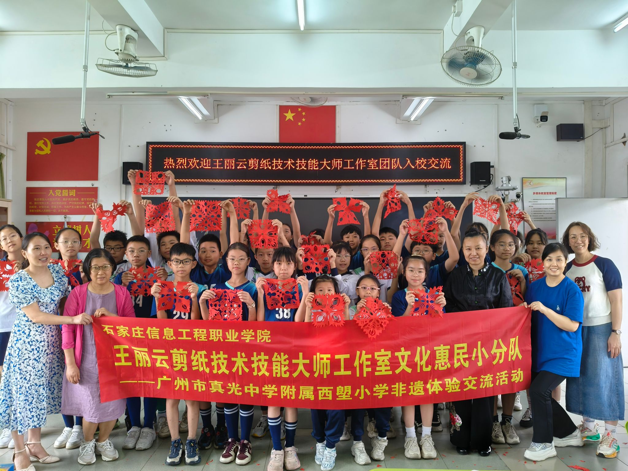5月17日-19日,传媒艺术系王丽云剪纸技术技能大师工作室团队受广东省外语艺术职业学院和广州市真光中学附属西塱小学的邀请,奔赴广州开展《中国传统文化与创意设计》课程及教材共建活动。