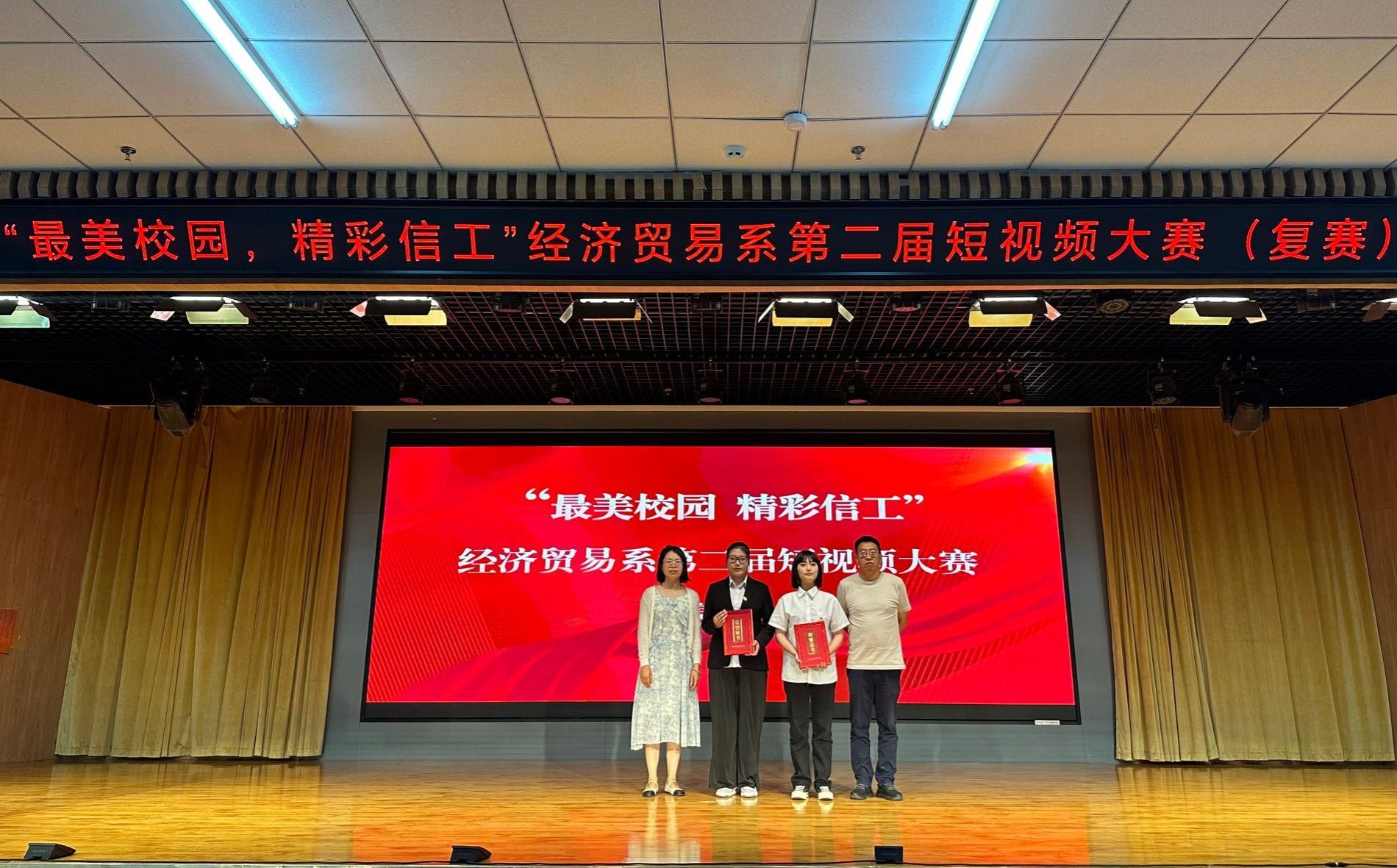 为进一步丰富学生课余生活,紧跟时代脚步,培养积极向上、团结拼搏、奋发有为的人生观、价值观,5月28日下午,经济贸易系在图书馆报告厅举办“最美校园 精彩信工”第二届短视频大赛(复赛)。经济贸易系党总支书记田洪舟,副书记孟云侠及全体辅导员参加。