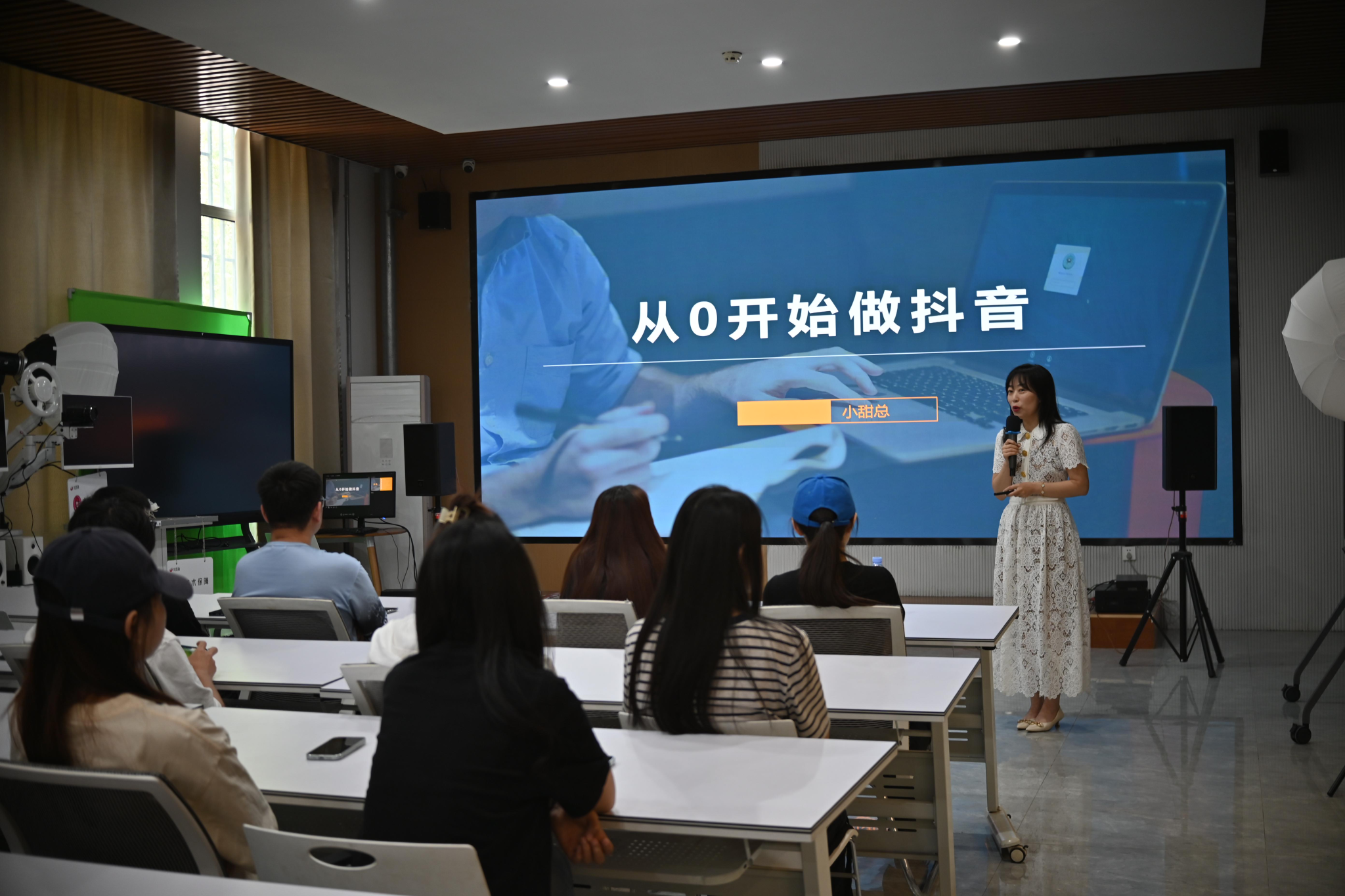 为激发广大青年创新活力,提升大学生新媒体技能运用能力,更好地让大学生把握新媒体平台的创业及就业机会,5月29日,传媒艺术系特邀石府餐饮执行董事、问道传媒河北分公司总裁李佳甜女士为同学们开展主题讲座“从0开始做抖音”。传媒艺术系近百名同学前来聆听。