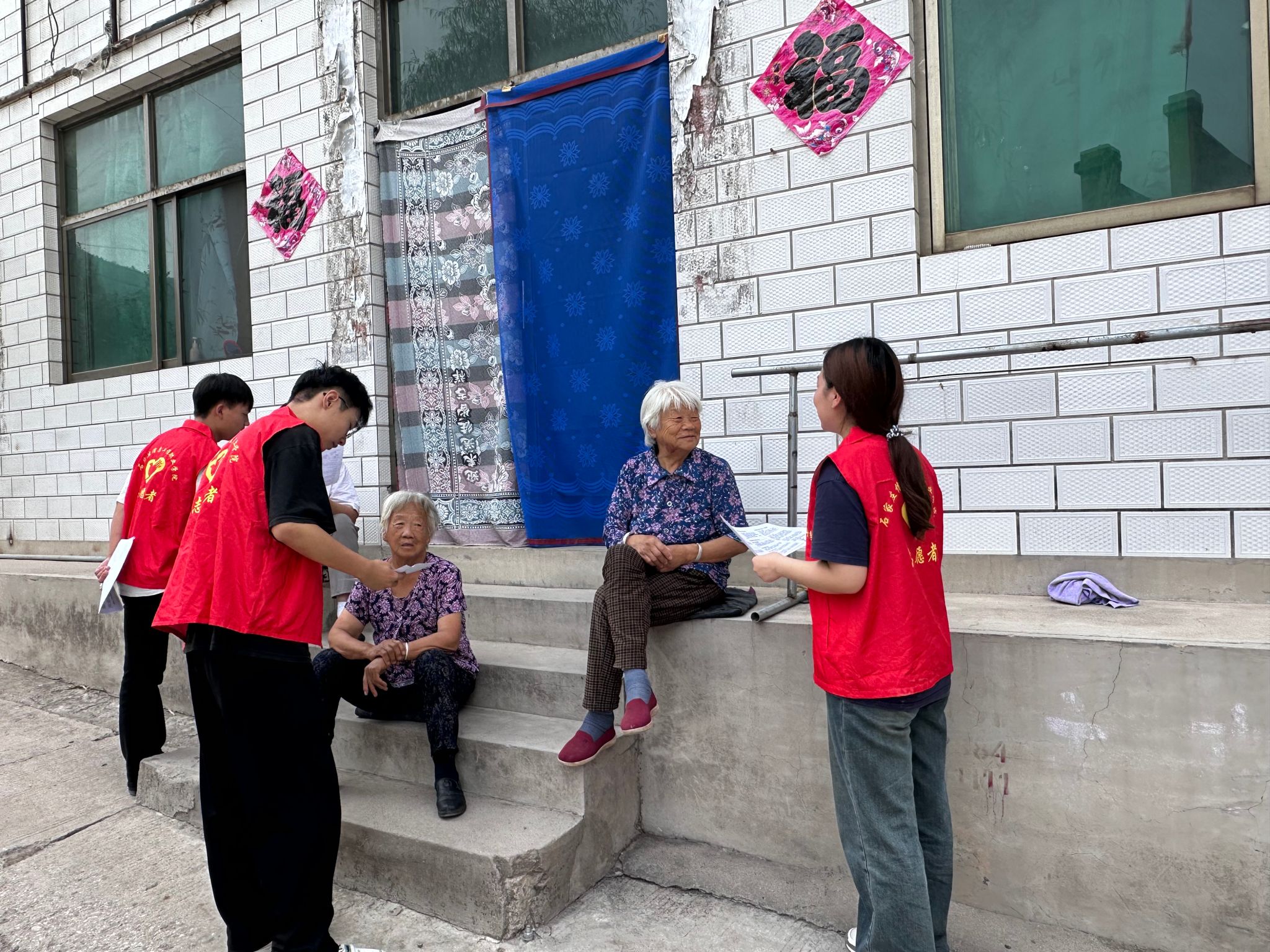 探访孤寡老人,彰显人文关怀。团队成员定期慰问村里的孤寡老人,与他们聊天解闷、散步锻炼,用温暖的陪伴驱散他们内心的孤单。在详细了解老人们的生活需求和健康状况后,团队成员主动为他们购买生活必需品,并为他们打扫房屋,用实际行动传递着关爱与尊重,让老人们感受到温暖。