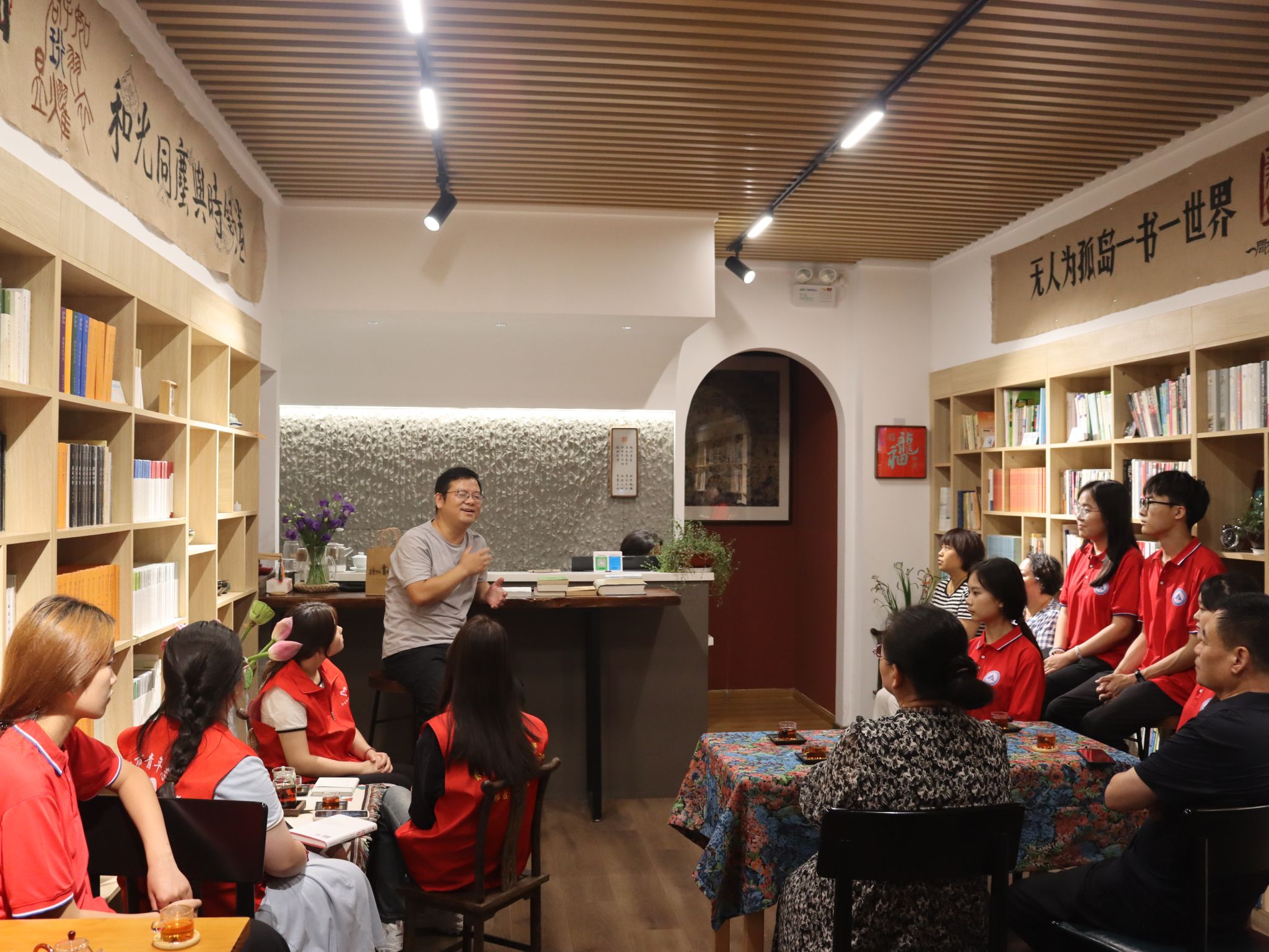 实践团来到“青年读书社”德润书馆,开展读书研学活动。活动现场,邢台市青年讲师团讲师聂明华从邢台的地理演变、生态变化、文化底蕴、历史人物、农特产品等方面展开讲解,让大家了解到拥有3500多年历史的“华北第一城”——邢台的历史文化。研学活动后,实践团成员参观了德润书馆,精妙的装潢,暖黄色的灯光和敞亮整齐的木质书架给人以安静悠闲的氛围感。纸灯、书法摆件、漆扇等一件件精美的手工制作,为书馆增添了浓浓的书香气息。据了解,书馆会定期举办读书会,搭建读书平台,推进读书交流,还有各种创意的手工课程,姜馆长希望通过丰富多彩的阅读活动,努力打造系列青年阅读品牌,引导广大青年树立“爱读书、读好书、善读书”的良好风尚。