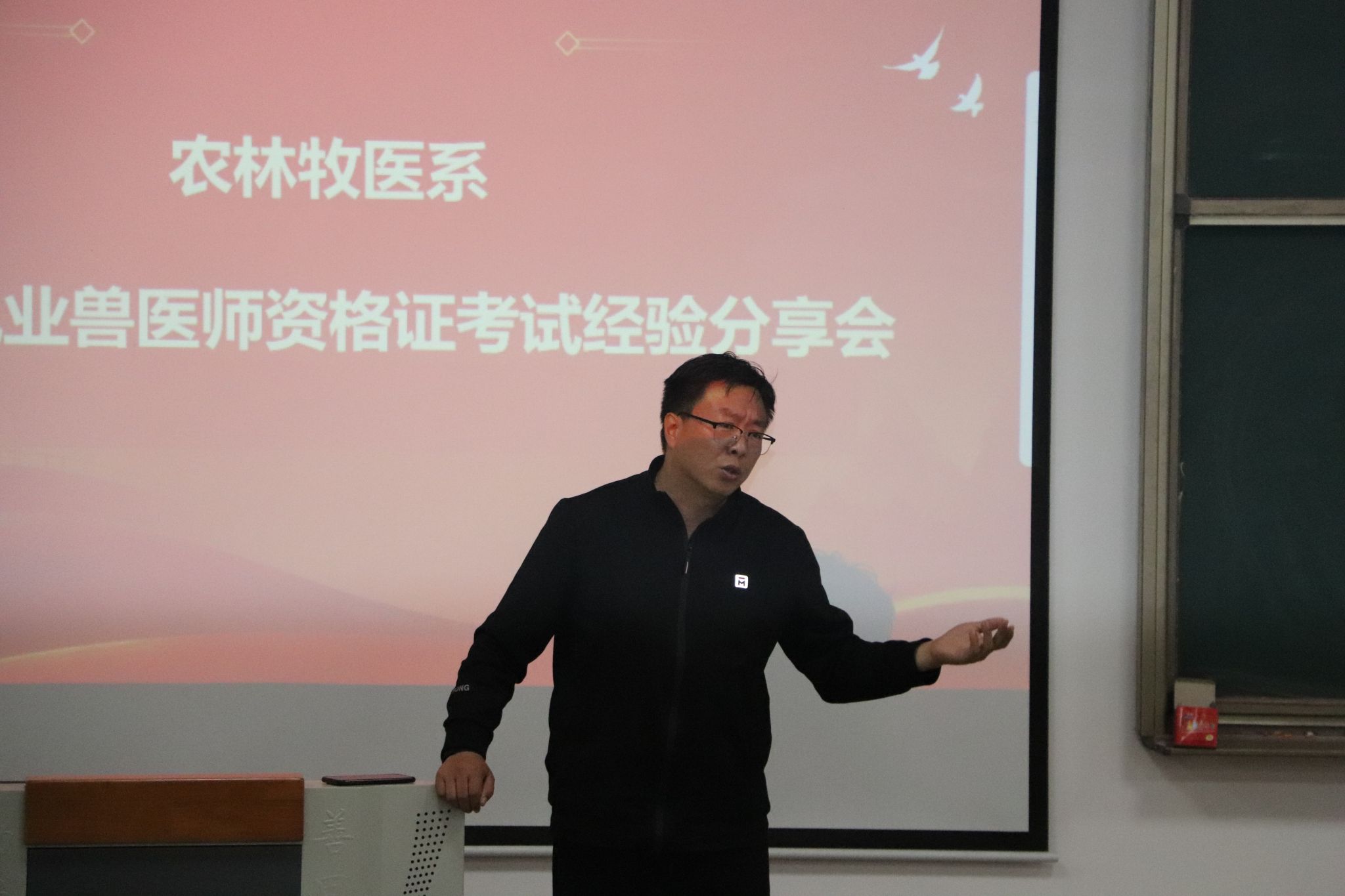 10月31日晚,农林牧医系在知新2号楼310教室举办“第三届执业兽医师资格证考试经验分享会”。农林牧医系党总支书记宋建蓬、副书记王丽萍莅临现场。