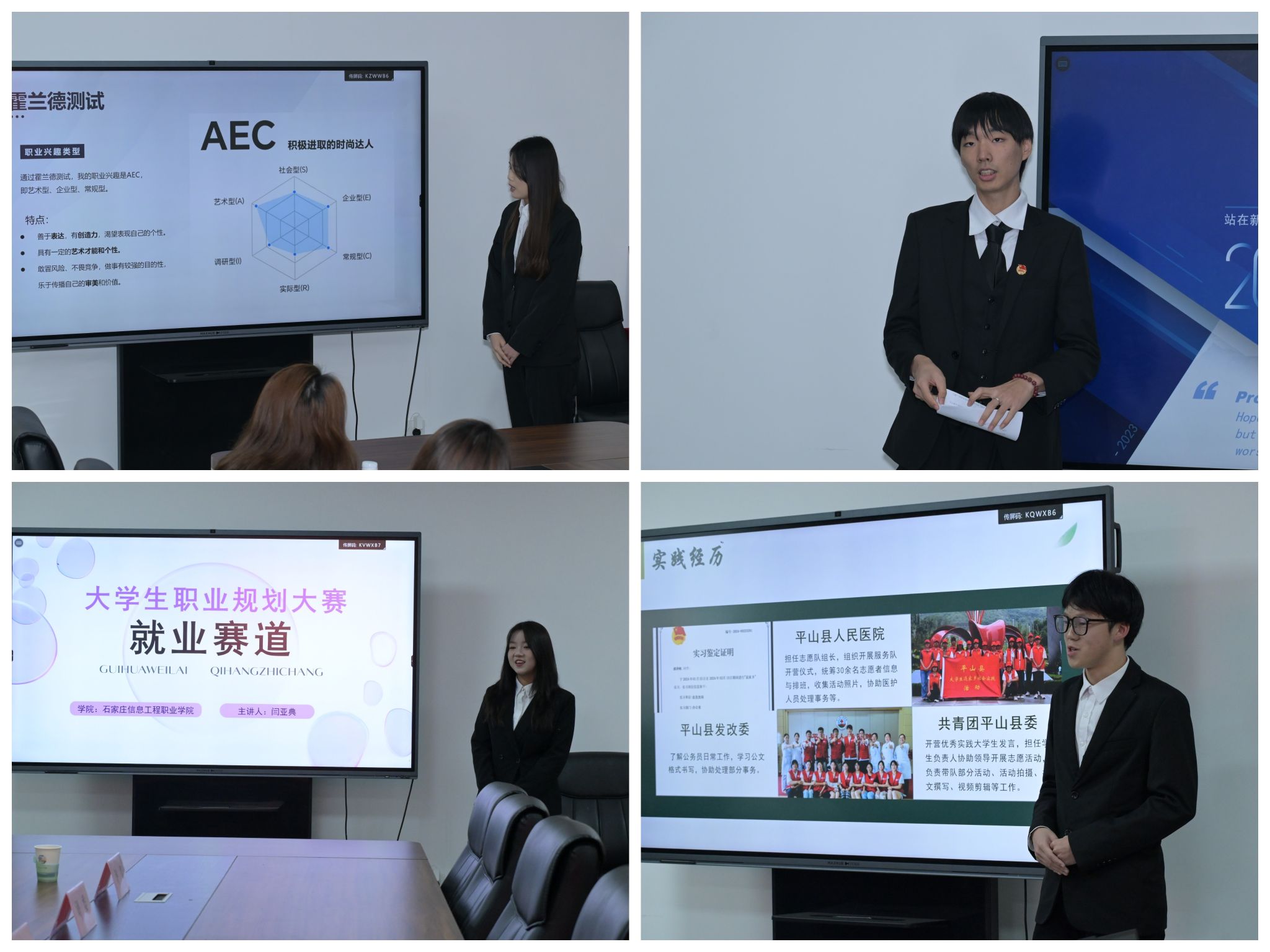 为引导同学们树立正确的就业观、职业观,提升职业规划能力,科学规划学业与职业发展,提升就业竞争力,推动更加充分和更高质量就业。11月13日下午,传媒艺术系在知新七号楼222教室和知新八号楼108教室举办传媒艺术系第二届大学生职业生涯规划大赛。河北怡和人力资源服务有限公司总经理张怡静,河北源达信息技术股份有限公司人力资源经理董延青,招生与就业指导中心生涯发展与就业指导教研室教师张立志、李娥,传媒艺术系专任教师王振楠、刘畅担任比赛评委,传媒艺术系师生代表观摩本次比赛。