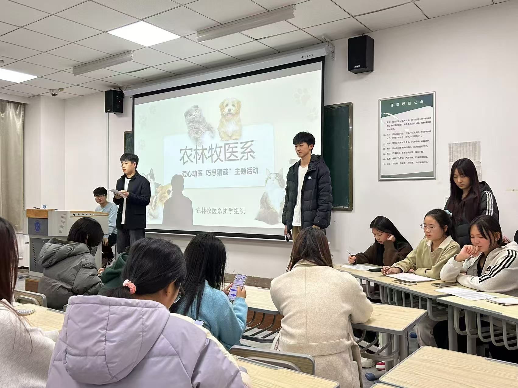 11月20日—22日,农林牧医系在知新6号楼209教室成功举办关爱小动物主题活动,活动以“关爱流浪动物 让生命不再流浪”为主题,通过科普讲解、猜谜活动、动物福利关怀等形式传递农林牧医系师生对动物的关爱。