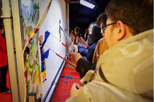 演出结束后,皮影工作坊环节吸引了众多有兴趣的同学踊跃参与。非遗传承人与同学们展开热烈互动,不仅亲自指导皮影戏的操作技巧,还详细讲解了皮影的幕后制作过程及其蕴含的艺术特色,让同学们得以深入了解皮影戏背后的精湛技艺与深厚文化内涵,对传统文化的热爱进一步被点燃。