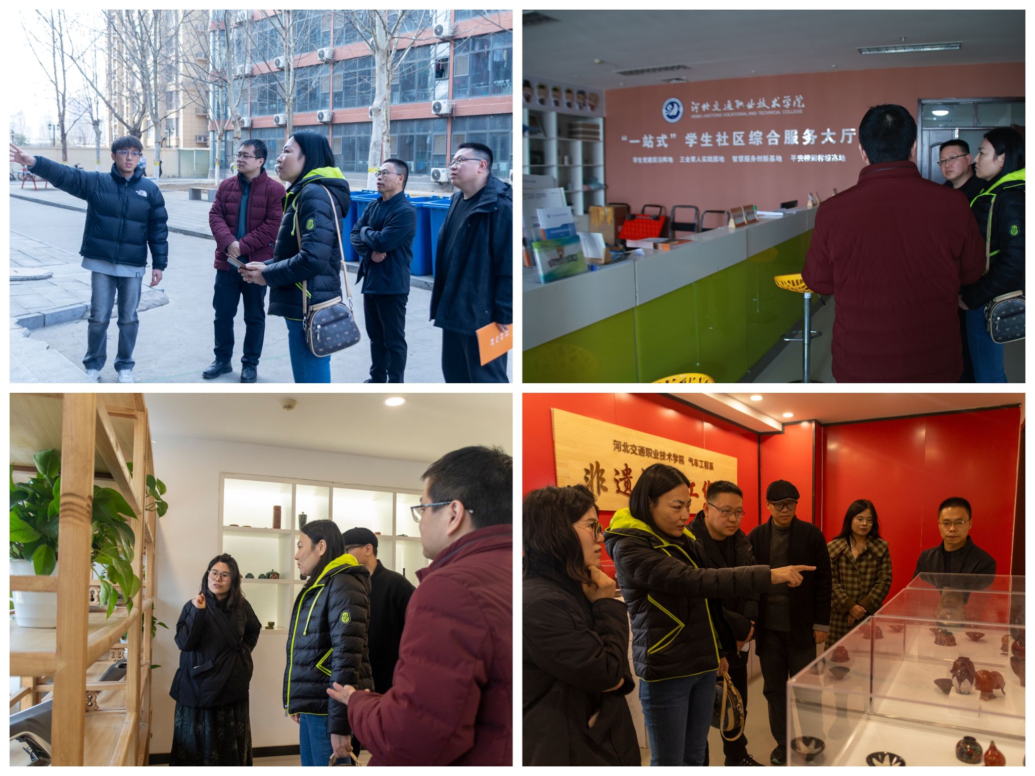 研讨结束后,传媒艺术系一行来到汽车工程系的非遗漆器工作室,参观了精美的大漆工艺作品,感受到了传统工艺与现代设计的完美融合,并就后期双方在木艺和大漆方面的合作进行了研讨。并就“一站式”学生社区综合服务、心理咨询师建设和学生宿舍社区建设进行了考察学习交流。