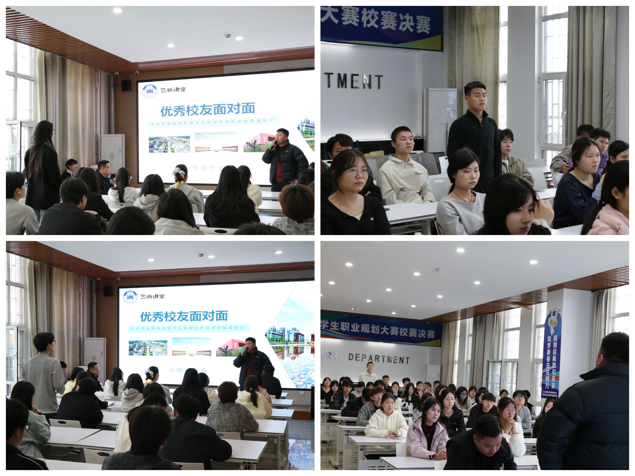为搭建校友与在校生交流平台,激发学生创新创业热情,3月12日下午,传媒艺术系“艺新讲堂”在知新8-108室举办“青春创未来”优秀校友面对面活动。传媒艺术系党总支书记张婷,副书记刘旭出席活动,80余名师生共同聆听2020届优秀毕业生——石家庄博圣文化传播有限公司、石家庄九亿文化传播有限公司创始人胡博轩与石家庄九亿文化传播有限公司总经理刘旭分享的创业故事,共话青春成长与行业未来。