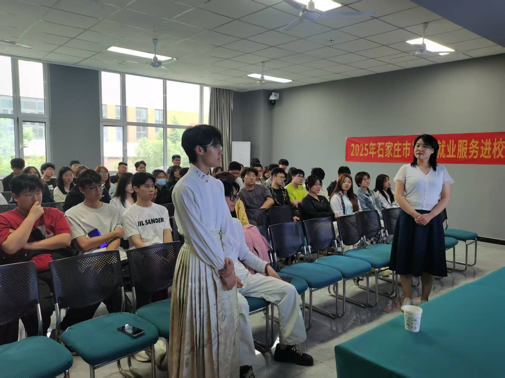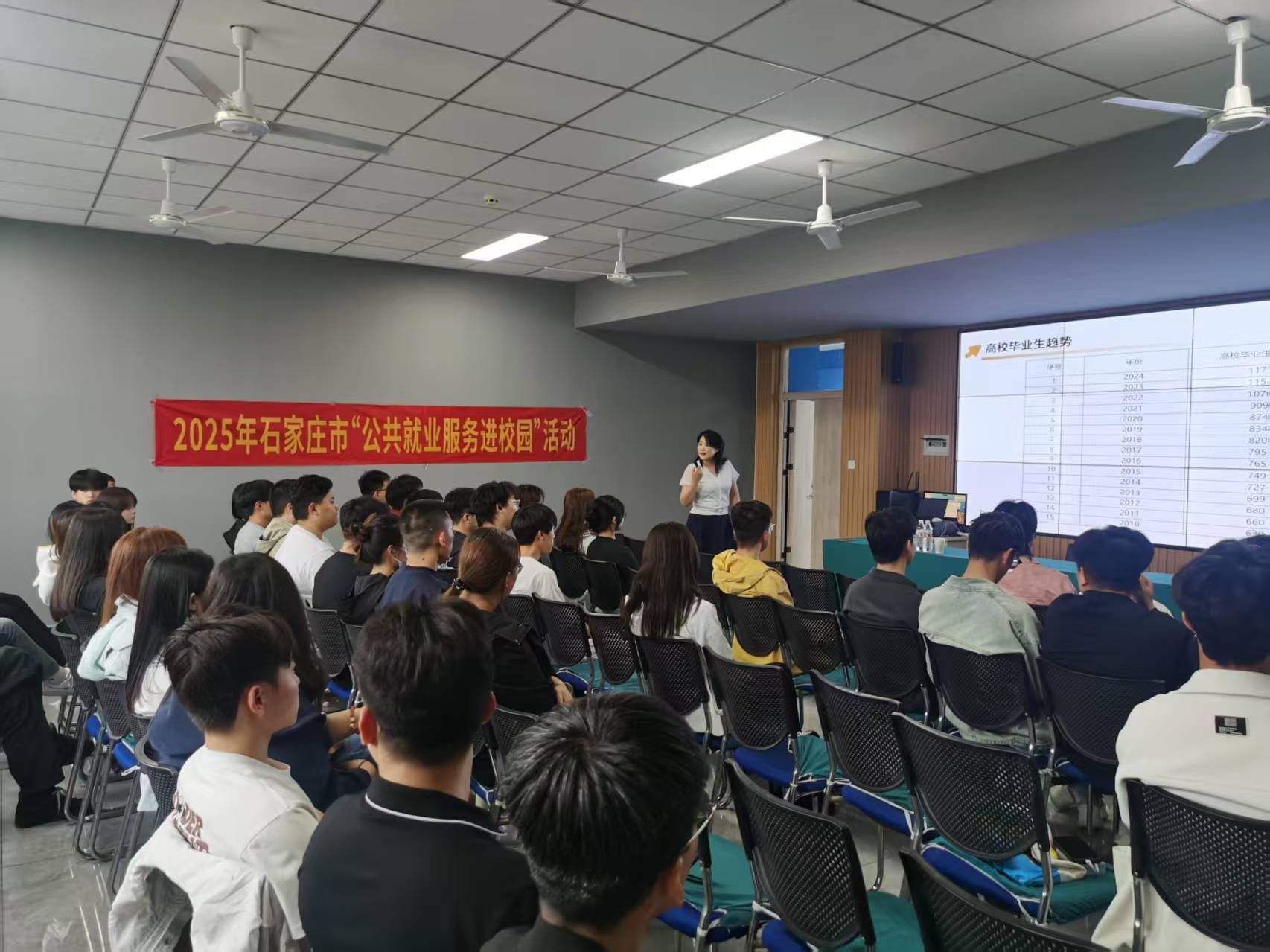 为贯彻党中央、国务院关于做好高校毕业生就业工作的决策部署,落实省委、省政府有关要求,推动公共就业服务向前延伸,多措并举促进毕业生就业创业,beat365官网特邀石家庄市就业服务中心开展“公共就业服务进校园”系列宣讲活动。4月29日和5月8日,市就业服务中心专家团队围绕“创新创业意识”和“就业政策”两大主题,为学生们带来一场就业创业知识的盛宴。