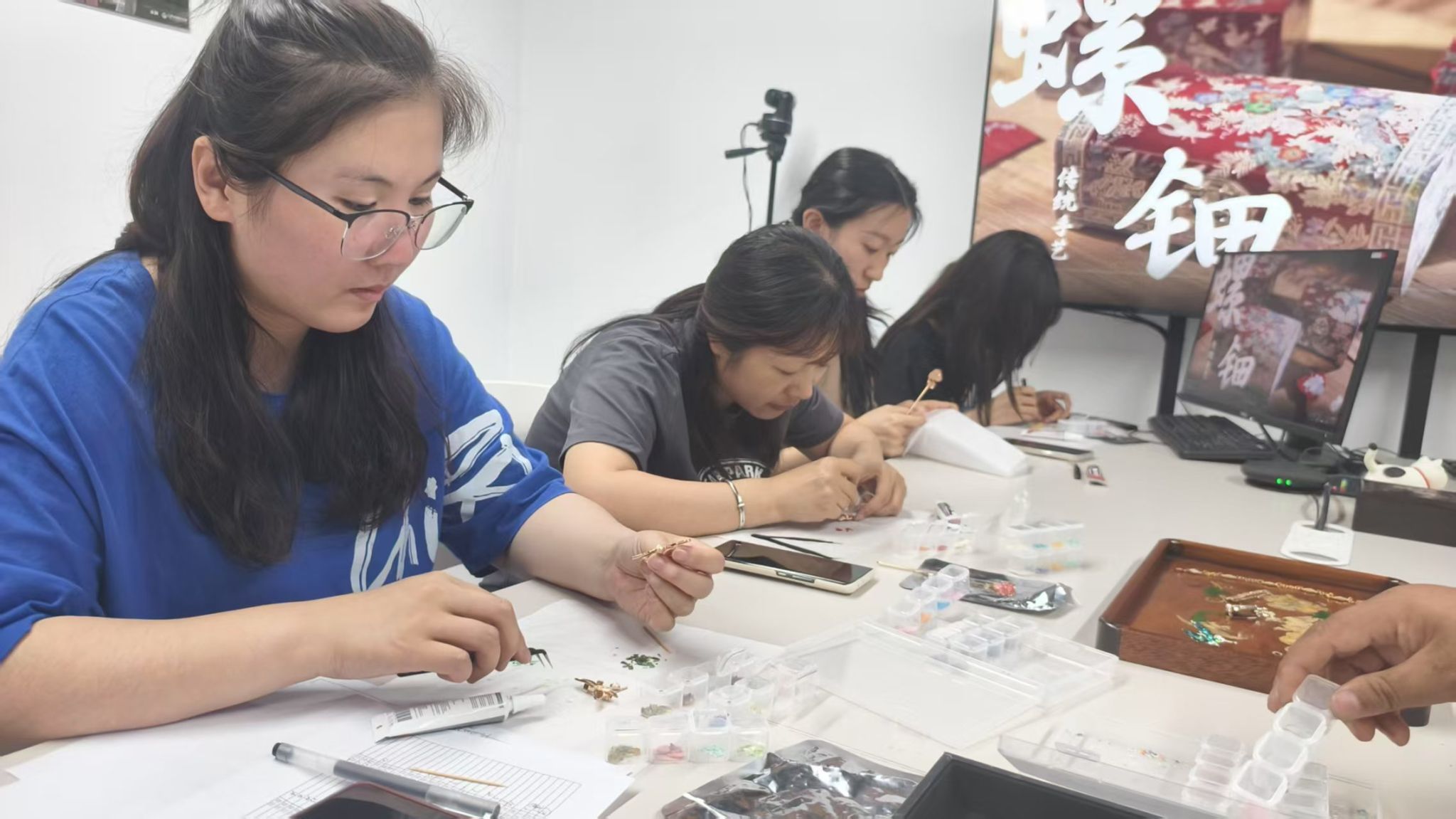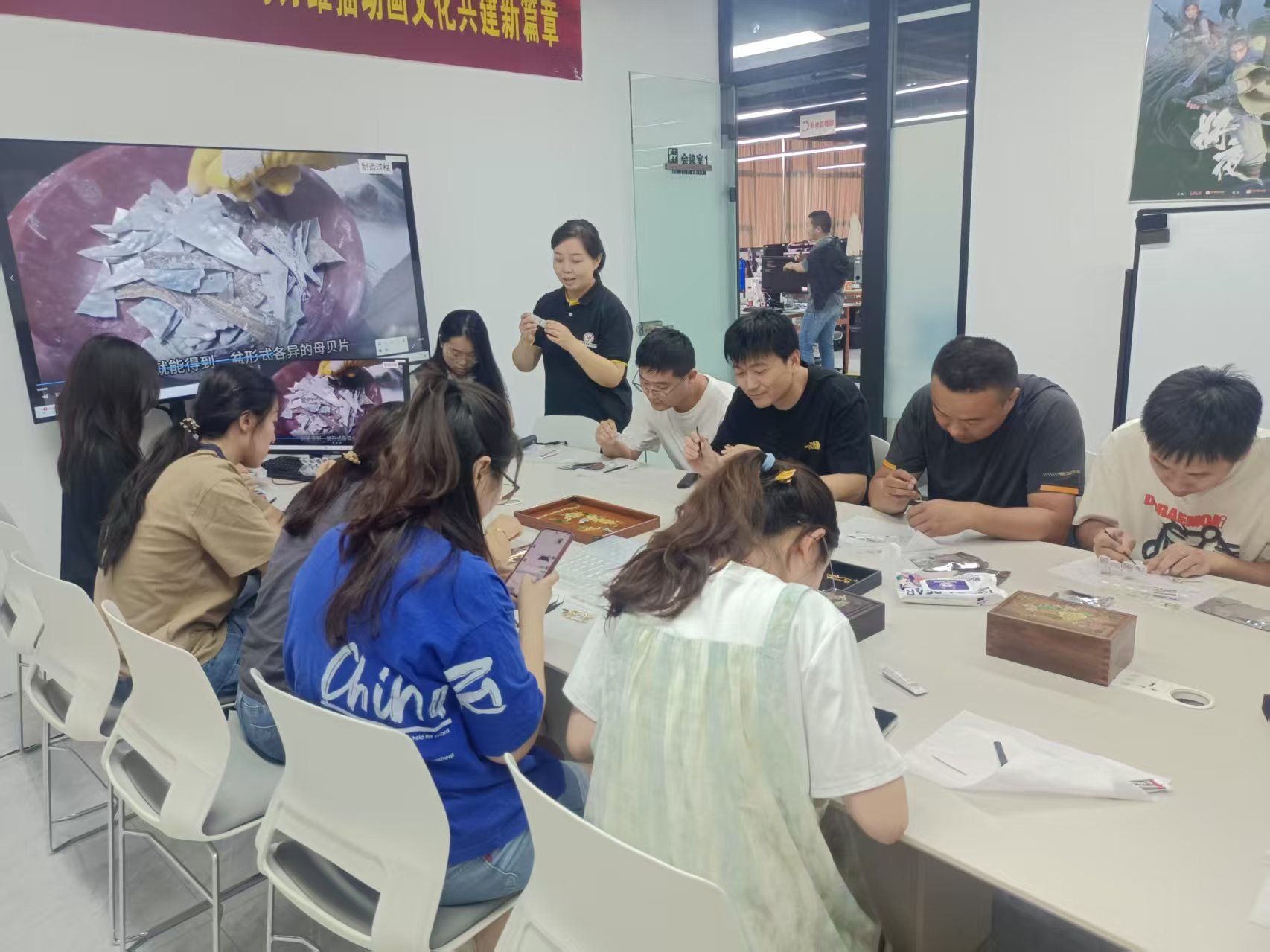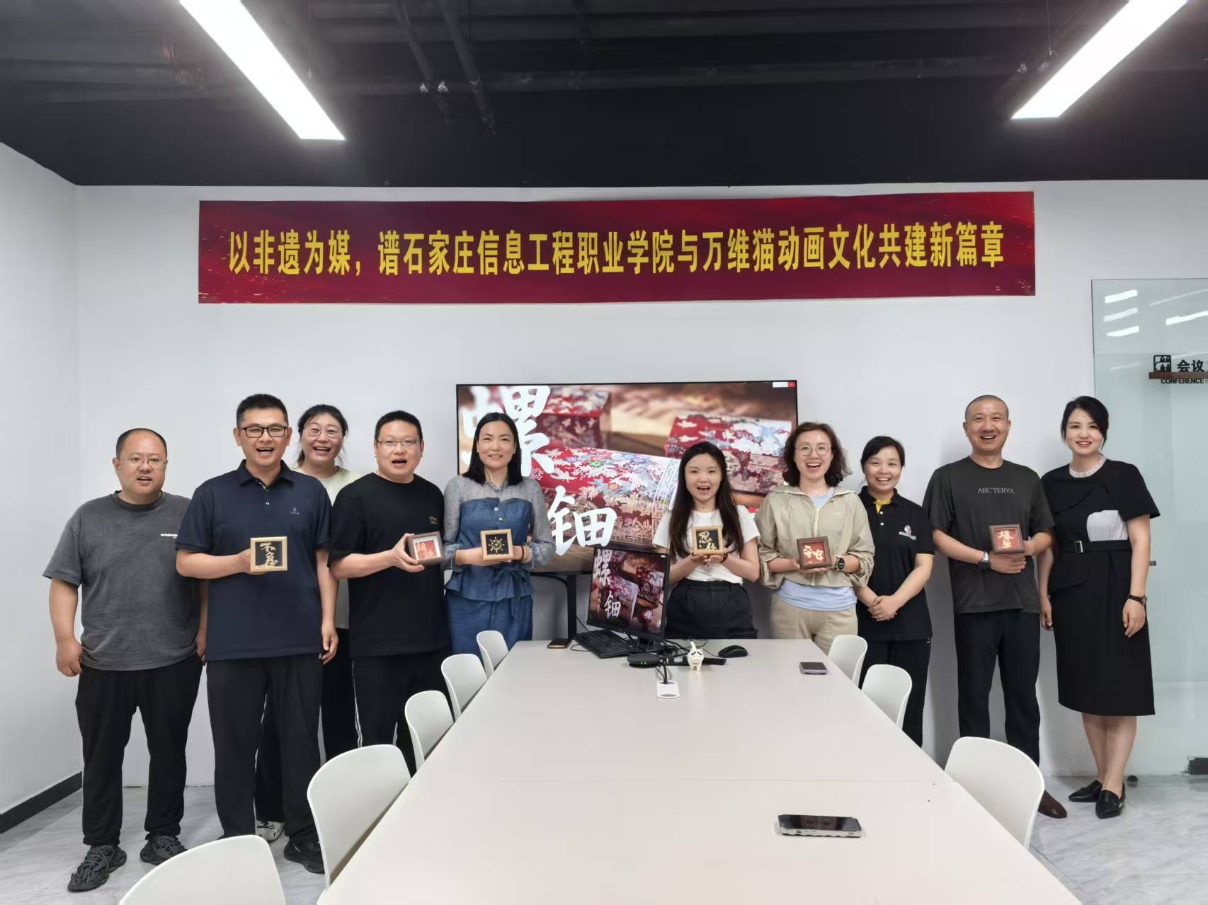 以非遗为媒,谱文化共建新篇章。5月28日下午,传媒艺术系相关负责人带队前往石家庄万维猫科技有限责任公司开展文化共建活动,将非遗螺钿技艺与烧箔技艺带到企业员工身边,通过理论讲解、工艺体验与文化分享等形式,带领参与者近距离感受千年非遗的独特魅力。该活动也是继学院与万维仁和(北京)科技有限责任公司携手共建动画捕捉中心之后“校企联动”新尝试。