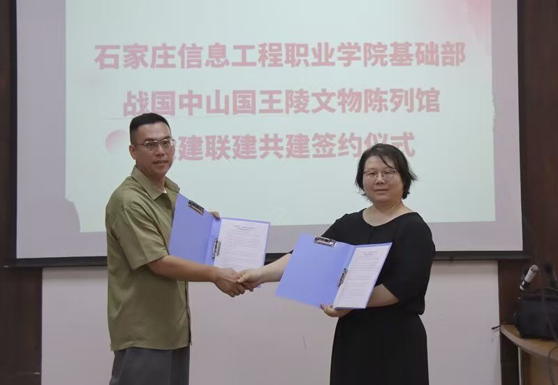 6月13日,基础部与战国中山国王陵文物陈列馆签署党建联建共建协议。河北省中山国文化研究会秘书长、陈列馆副馆长柴婷婷,基础部党总支书记张娜、主任姜涛,以及基础部党总支委员、支部书记和学生代表共20余人出席签约仪式。