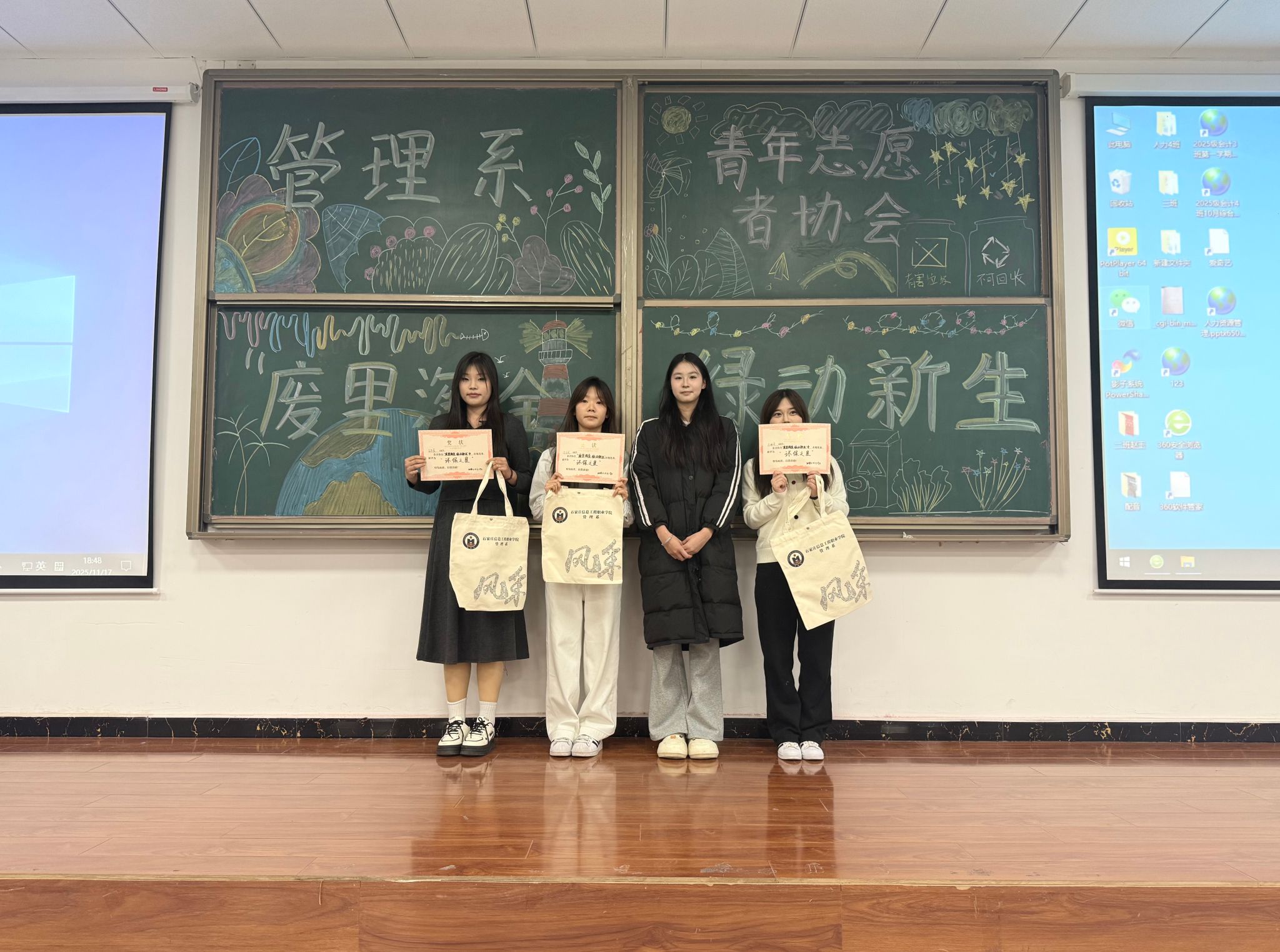 为强化学生环保意识与创新思维,11月17日下午18时,管理系于知新2号楼310教室开展“废里淘金,绿动新生”主题思想活动。
