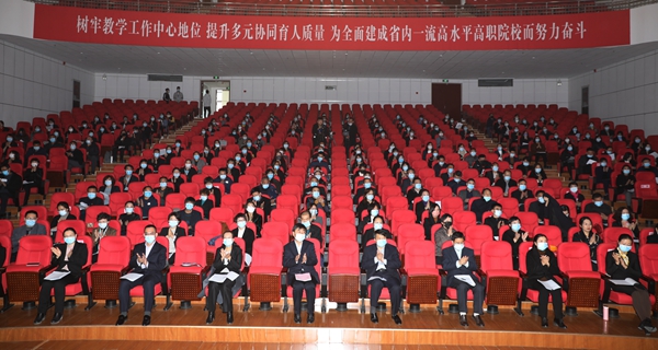 本网讯(通讯员 吴培培 陈旭超)近日,beat365中文官方网站在昭德礼堂隆重召开2021年教学工作大会,全面总结学院第二次党代会以来的教学工作,为下一步教学工作指明方向、明确目标、凝聚共识、树立信心、鼓舞干劲。 党委书记马文刚在讲话时强调,这次大会是学院在新的发展阶段,面对新的形势和任务,召开的一次十分重要的会议。希望全院上下以此次会议为契机,转变思想观念,凝聚思想共识,树立品牌意识,强化质量思维,真抓实干、埋头苦干,奋力开创以教学为中心的各项工作高质量内涵式发展新局面,为全面建成“省内一流”高水平高职院校努力奋斗。院长许征程作教学工作专题报告。副院长赵伟宣读表彰决定。副院长黄淑敏主持会议。副院长刘占红、党委委员王志明出席大会。