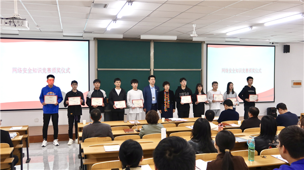 10月14日下午,黄淑敏在参加“增强网络安全意识、筑牢网络安全防线”主题讲座时强调,要结合学院实际,加强组织领导,切实提高对网络安全工作的认识,加大宣传教育,全力营造良好的网络安全学习工作氛围。要加强督促检查,确保网络安全工作落到实处。并与良才教育总经理梁学军共同为获得网络安全知识竞赛一等奖的10名同学颁发了奖状和奖品。