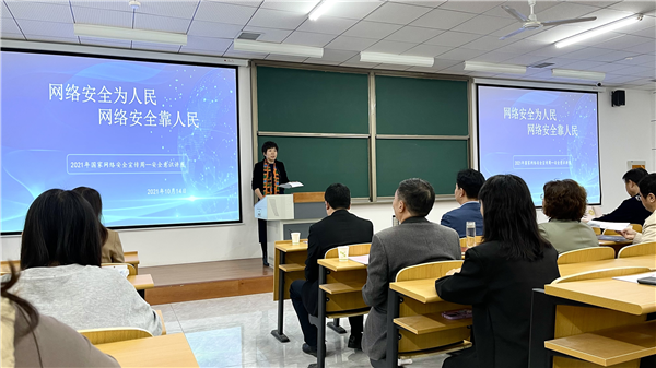 本网讯(通讯员吴培培 陈旭超)10月11日至17日,beat365中文官方网站组织举办网络安全宣传周主题教育系列活动。紧密围绕“网络安全为人民,网络安全靠人民”主题,通过新媒体平台展播网络安全政策法规、发放网络安全宣传资料、开展网络安全知识竞赛、举办网络安全宣传讲座、组织网络安全攻防体验等丰富多彩的形式,让网络安全教育看得见、摸得着。副院长黄淑敏参加相关活动。