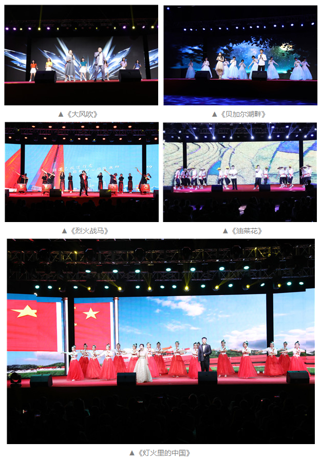 歌伴舞《大风吹》用复古的旋律将大家带回到上世纪九十年代,回忆中夹杂着怀念;《贝加尔湖畔》唯美悠扬,让人仿佛置身于贝加尔湖畔的美景与浪漫之中;《烈火战马》荡气回肠,热血沸腾,燃爆全场,表达了青年大学生崇尚英雄、致敬英雄的由衷之情;《油菜花》以浓郁的民谣风表达了人们对和平、安定生活的向往;《灯火里的中国》从百姓视角里眺望万家灯火,展现了灯火里的繁华似锦和安详宁静、灯火里的奋发图强和生生不息。
