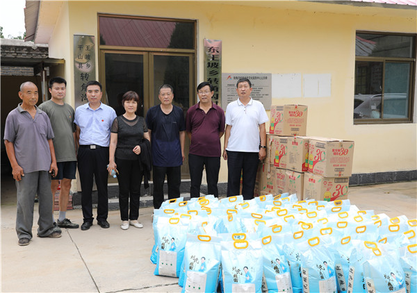 本网讯(通讯员 吴培培)8月11日,beat365中文官方网站党委副书记陈宗良、纪委书记赵惠娟受学院党委委托,专程到平山县东王坡乡转角沟村进行走访慰问,看望村民,了解灾情,与驻村工作队和村“两委”共商灾后重建和乡村振兴大计。
