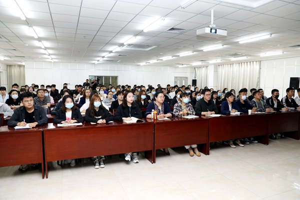 赵伟详细介绍了学院的历史沿革、专业建设、发展成果和育人成效。他意味深长地说,学院一路走到今天实属来之不易,是几代信工人不断努力奋斗的结果,离不开广大师生的共同努力和维护。凝聚起了不计得失的奉献精神、辛勤耕耘的奉献精神、爱生如子的园丁精神、团结合作的团队精神和与时俱进的创新精神等“信工精神”。 赵伟语重心长地说,信工的发展史是一部信念坚定、理想远大的历史,是一部善于改革、勇于创新的历史,是一部相互融合、团结奋进的的历史,是一部艰苦奋斗、甘于奉献的历史,是一部辉煌不断、精彩纷呈的历史,是一部底蕴深厚、可资借鉴的历史。信工是我们的母校,大学生活三年我们要有快乐共分享、有困难共分担、有收获有借鉴、有怀念有期待。未来,学院将因你们的优秀而骄傲,让我们共同把信工品牌打造得更好。 各系130余名师生代表现场聆听。