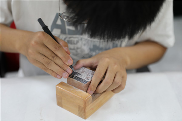 一方寿山石,一把小刻刀,在同学们手中翻转,“雄关漫道真如铁,而今迈步从头越。”这些酷爱篆刻的青年大学生,将革命语录、经典诗词刻在石头上,印在灵魂里。