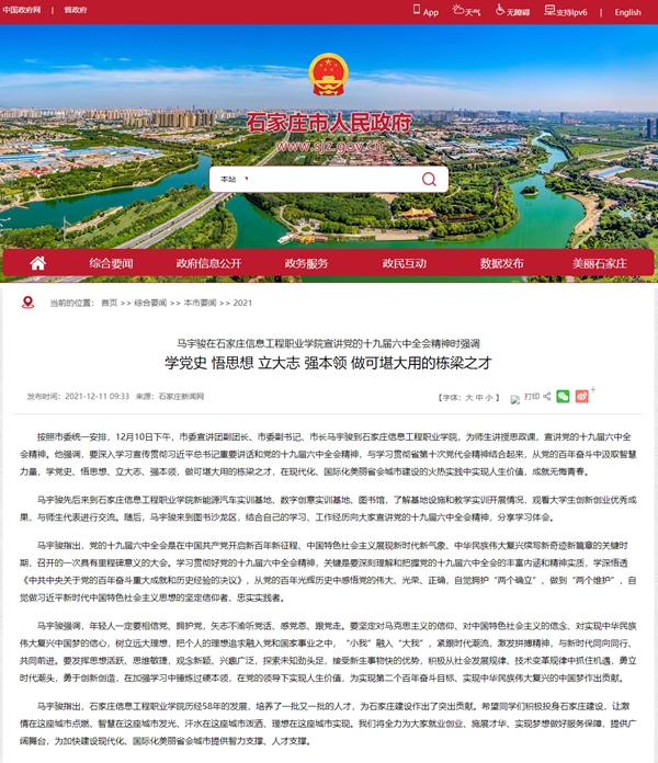 原文链接:石家庄市人民政府 马宇骏在beat365中文官方网站宣讲党的十九届六中全会精神