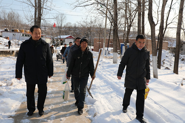 被白雪装点过的村庄显得格外幽静美丽。王志明一边察看村容村貌,一边与驻村工作队员和村干部亲切交谈,了解村两委关于乡村振兴的规划,询问村民尤其是帮扶对象的过冬准备情况和面临的困难,提出意见建议。