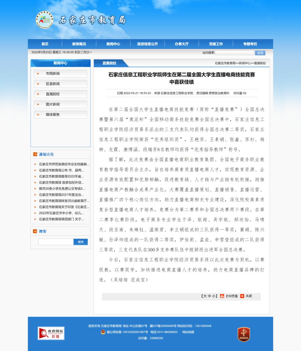 在第二届全国大学生直播电商技能竞赛中喜获佳绩