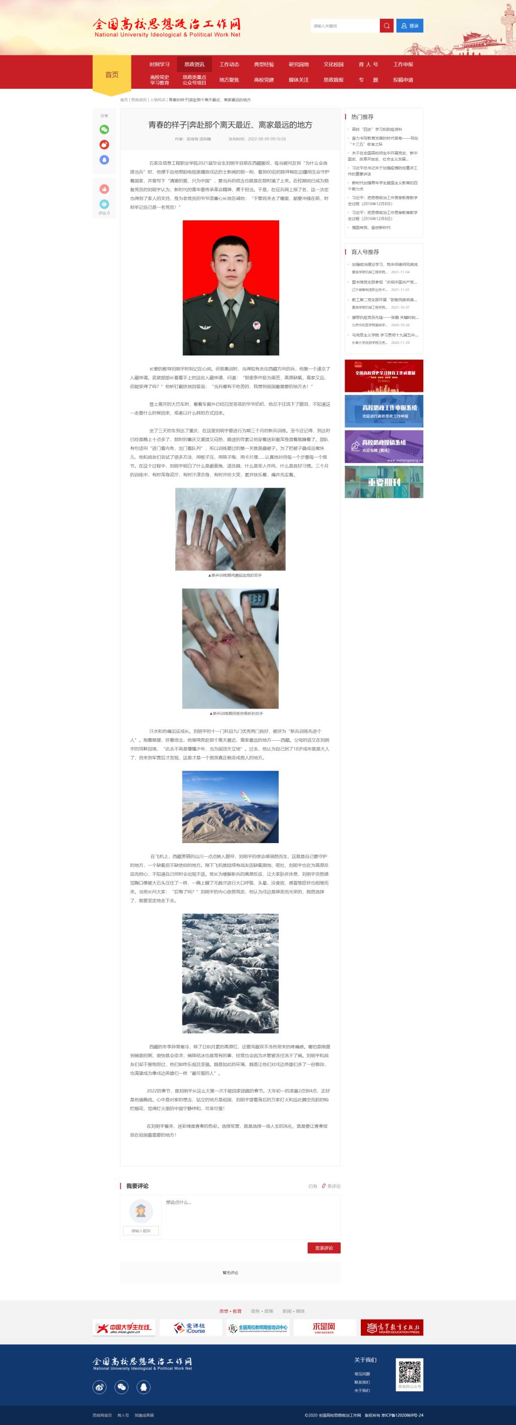 beat365中文官方网站2021届毕业生刘明宇目前在西藏服役,每当被问及到“为什么会选择当兵”时,他便不由地想起电视里播放戍边烈士新闻的那一刻,看到00后的陈祥榕在边疆用生命守护着国家,并曾写下“清澈的爱,只为中国”,要当兵的信念也就是在那时涌了上来。在校期间已成为预备党员的刘明宇认为,新时代的青年要传承革命精神,勇于担当。于是,在征兵网上报了名,这一决定也得到了家人的支持,身为老党员的爷爷语重心长地告诫他:“不管将来去了哪里,都要冲锋在前,时刻牢记自己是一名党员!”