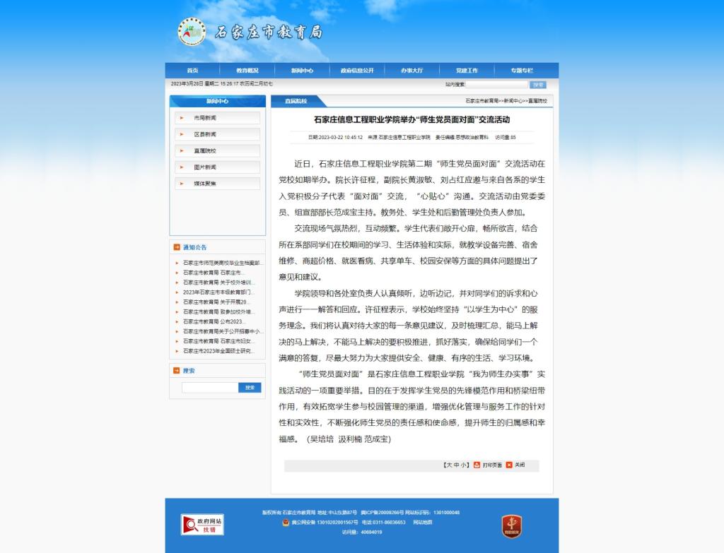 “师生党员面对面”是beat365中文官方网站“我为师生办实事”实践活动的一项重要举措。目的在于发挥学生党员的先锋模范作用和桥梁纽带作用,有效拓宽学生参与校园管理的渠道,增强优化管理与服务工作的针对性和实效性,不断强化师生党员的责任感和使命感,提升师生的归属感和幸福感。