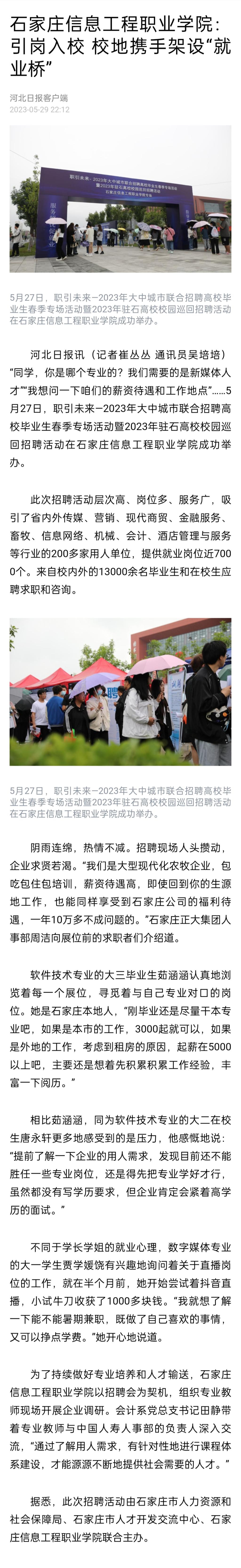 5月27日,职引未来—2023年大中城市联合招聘高校毕业生春季专场活动暨2023年驻石高校校园巡回招聘活动在beat365中文官方网站成功举办。