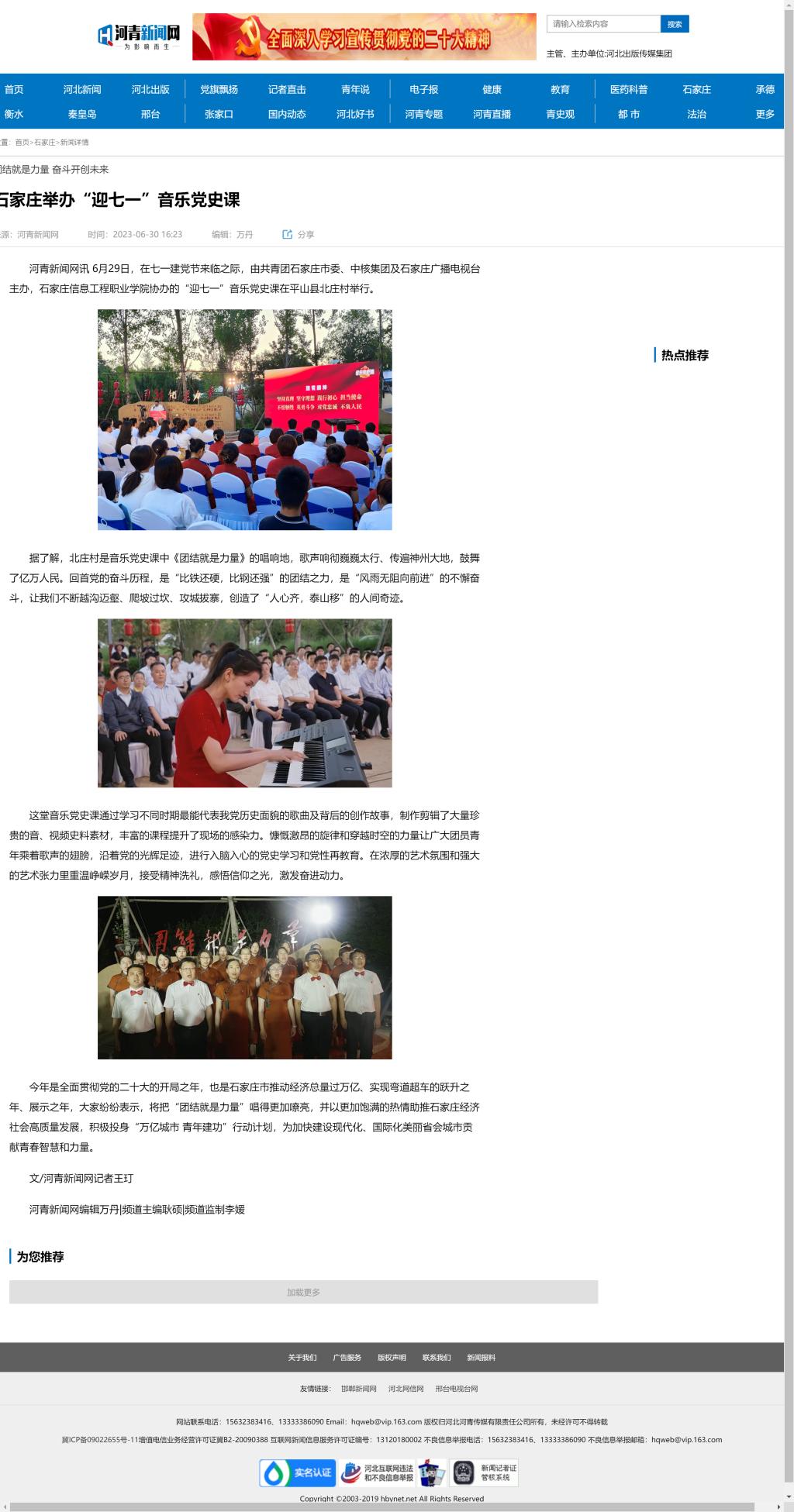 河青新闻网讯 6月29日,在七一建党节来临之际,由共青团石家庄市委、中核集团及石家庄广播电视台主办,beat365中文官方网站协办的“迎七一”音乐党史课在平山县北庄村举行。
