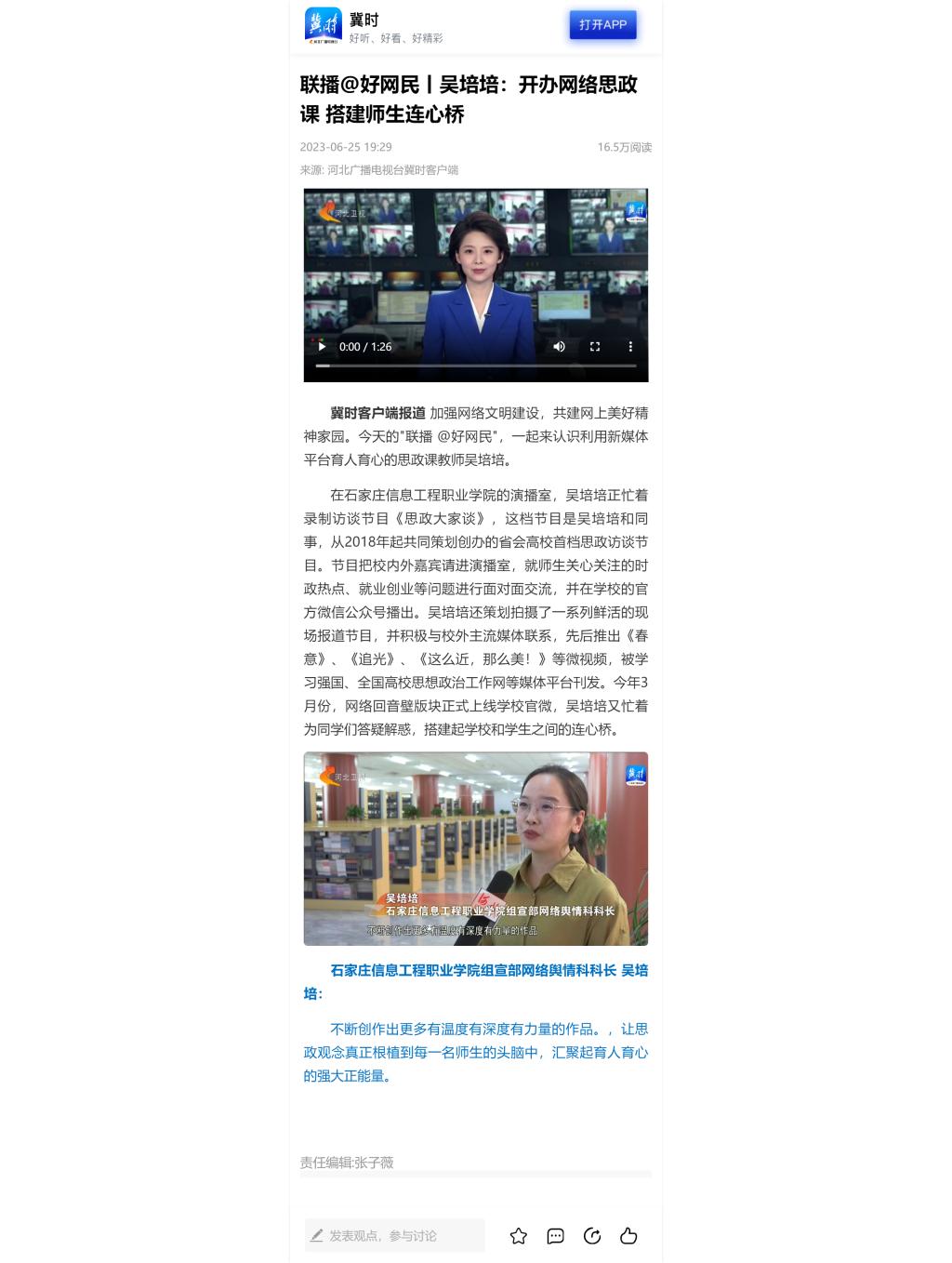 冀时客户端报道 加强网络文明建设,共建网上美好精神家园。今天的"联播 @好网民",一起来认识利用新媒体平台育人育心的思政课教师吴培培。