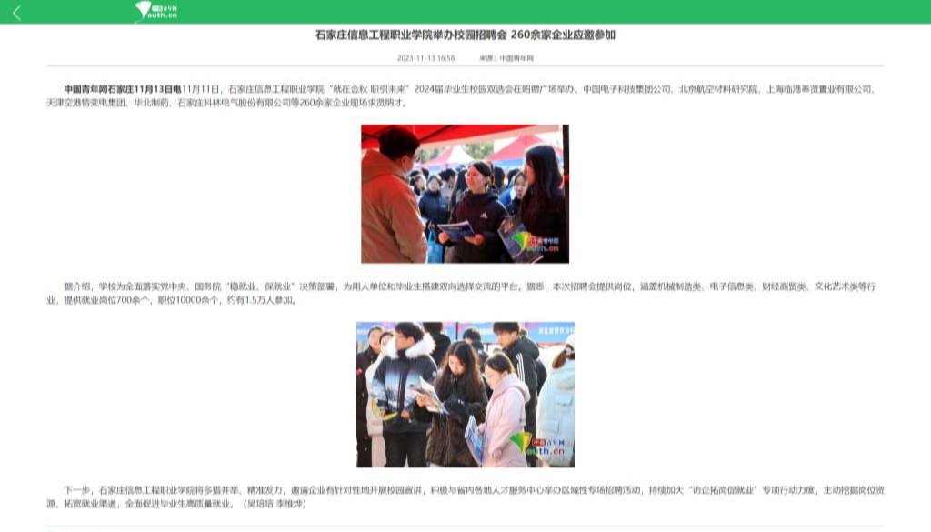 据介绍,学校为全面落实党中央、国务院“稳就业、保就业”决策部署,为用人单位和毕业生搭建双向选择交流的平台。据悉,本次招聘会提供岗位,涵盖机械制造类、电子信息类、财经商贸类、文化艺术类等行业,提供就业岗位700余个,职位10000余个,约有1.5万人参加。